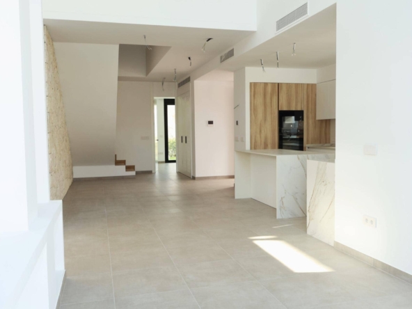 The villas offer four generous bedrooms, three bathrooms, and a guest toilet distributed across two floors. The open-plan living and dining area features double-height ceilings that enhance natural light and create an airy, inviting atmosphere. Additional highlights include an interior garden with a skylight, a wine cellar. And a floating staircase that adds a touch of architectural elegance. Kitchens come fully furnished with upper and lower cabinets and high-quality appliances, while electric roller blinds in the bedrooms provide both comfort and convenience.