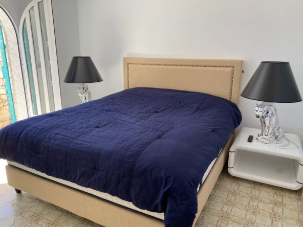 The villa is set on a large plot with many terraces and seating areas. The pool and jacuzzi are surrounded by a large terrace with enough space for several sunbeds and the outdoor shower. The outdoor kitchen is located on the covered terrace. The perfect spot for al fresco dining. From the spacious roof terrace, the views are again stunning. The garden is mature and Mediterranean. There are several fruit trees.