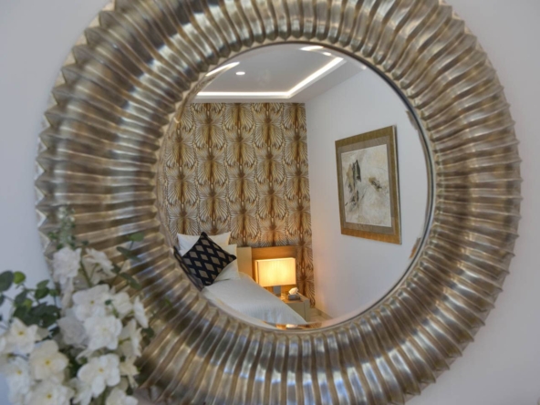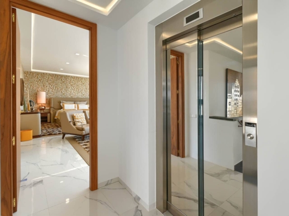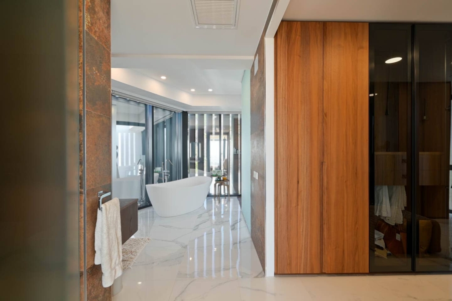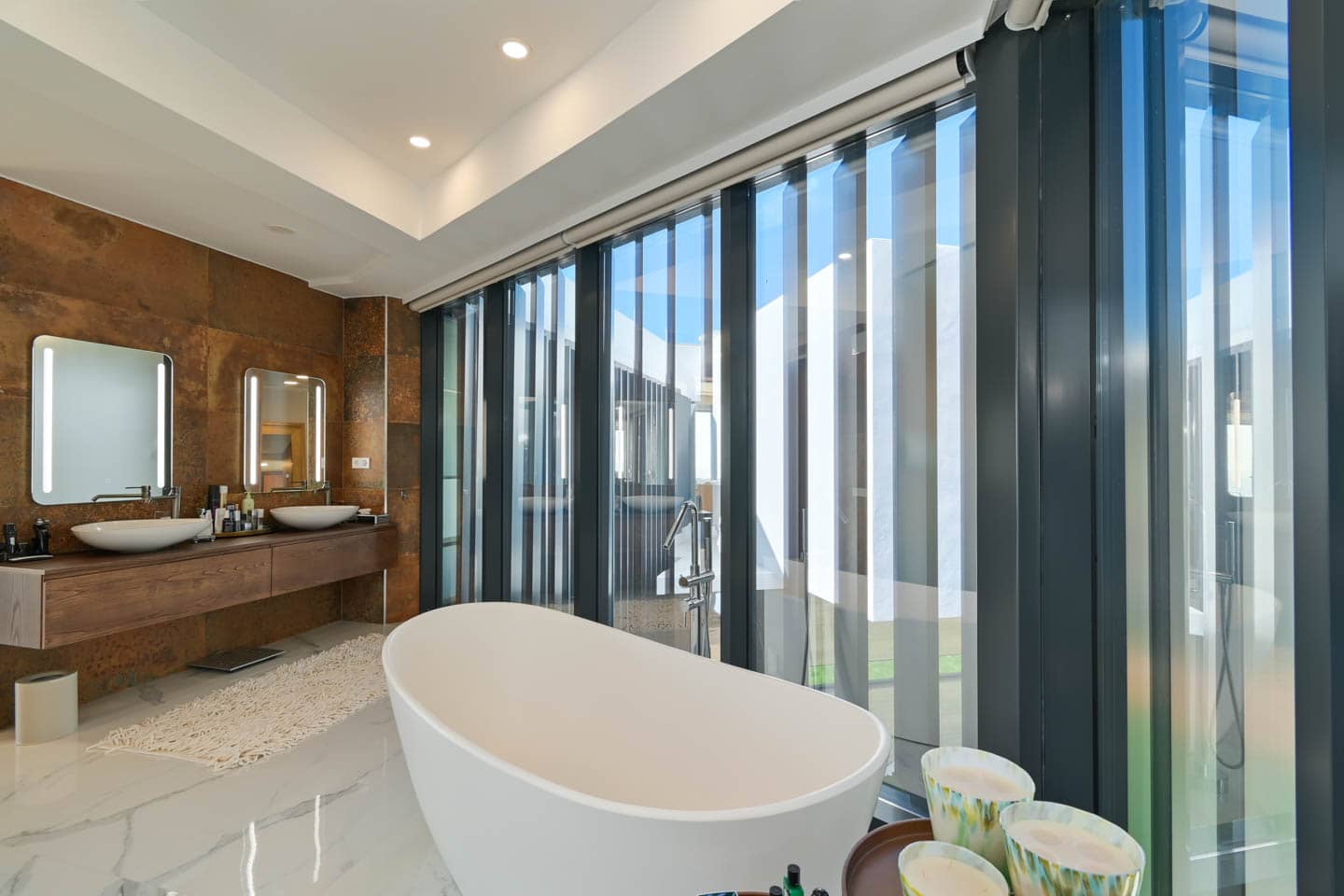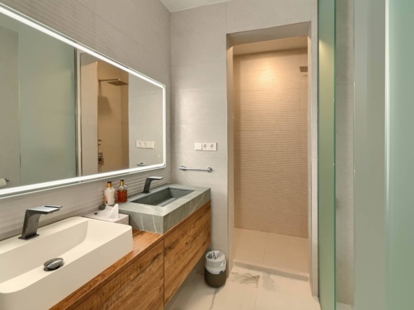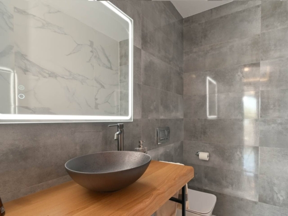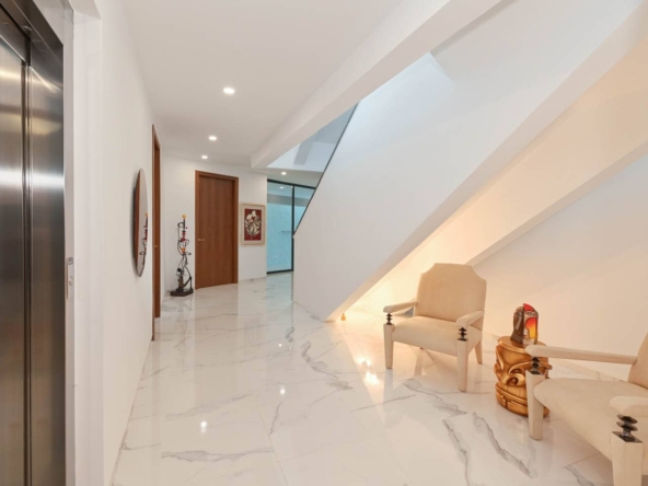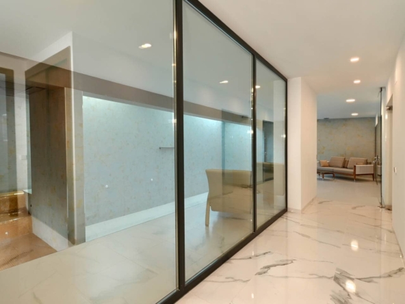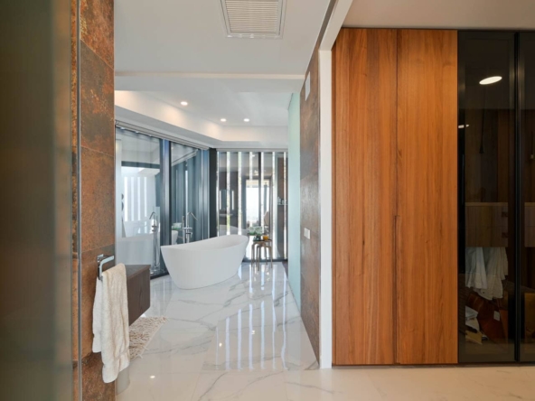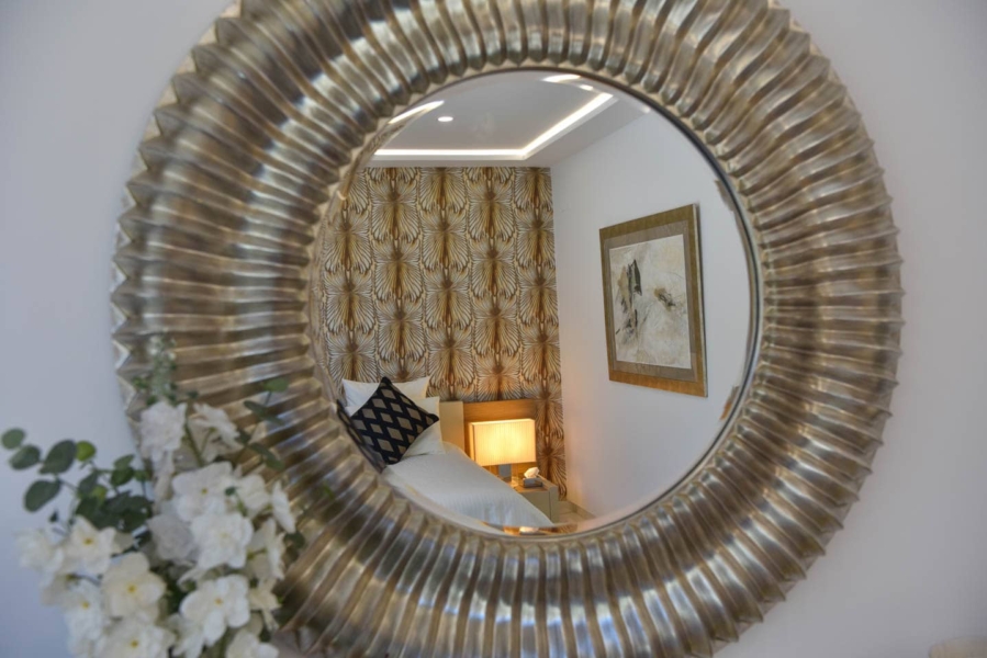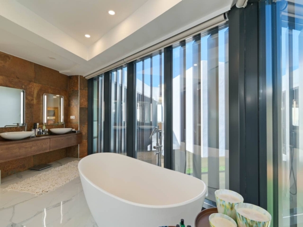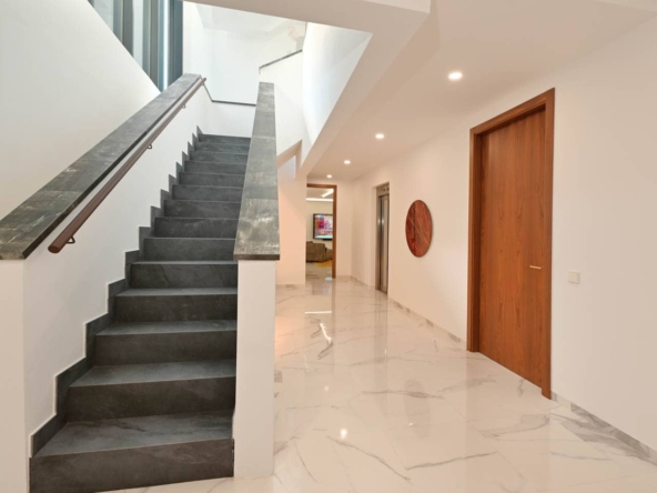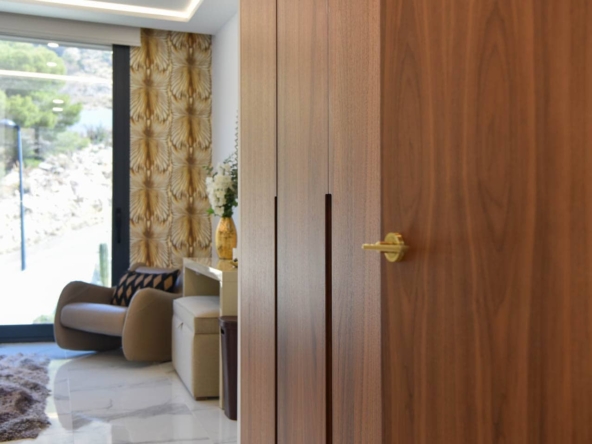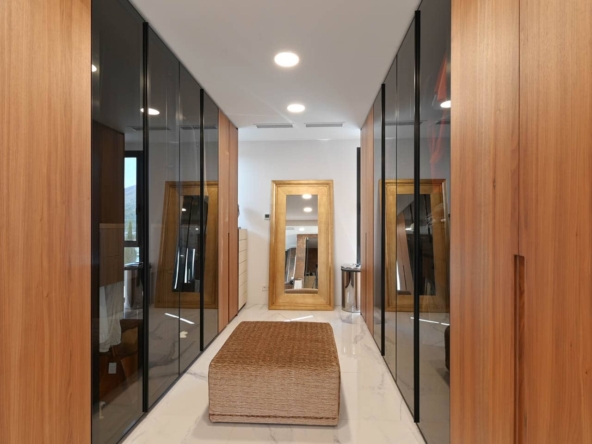 The primary suite is a standout: a tranquil retreat featuring a generous walk-in wardrobe. A raised bathtub , large walk-in rain shower, and a private WC. The suite opens to a wraparound terrace, shared with the upper floor, providing multiple spots to enjoy sunrise, sunset, and every golden moment in between.