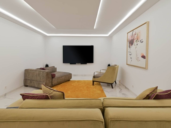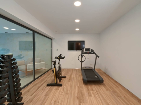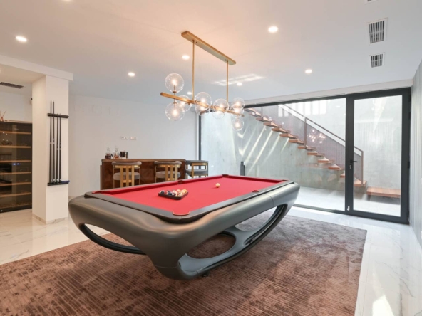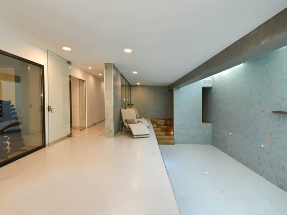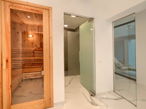 On the lower ground floor, the villa transforms into a private sanctuary for relaxation and play. This level includes a heated indoor pool, sauna, gym, games room, and a second lounge. The ultimate setting for health, wellness, and entertaining on your own terms.
