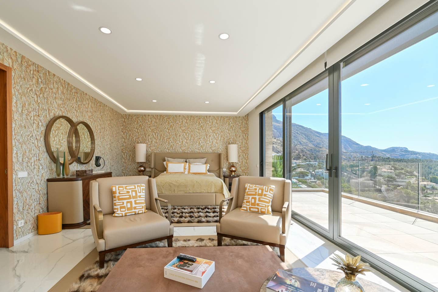 Architectural Elegance with Unrivalled Views in Altea La Vella Bedrooms | Spa & Wellness Level | Panoramic Sea, Mountain & Skyline Views | Heated Infinity Pool