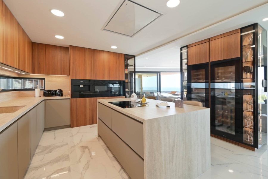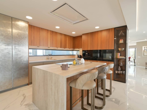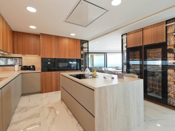 The kitchen is equipp with Miele appliances and custom Doca cabinetry, combining sophisticated design with practical luxury.