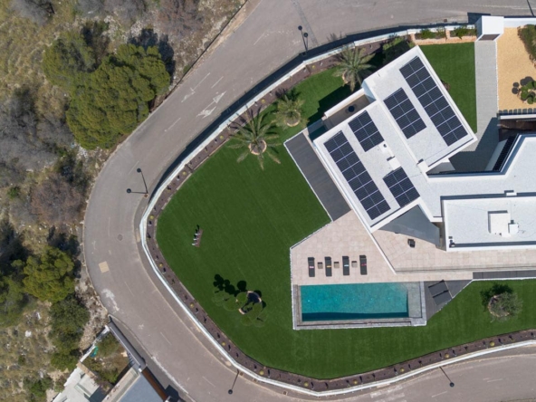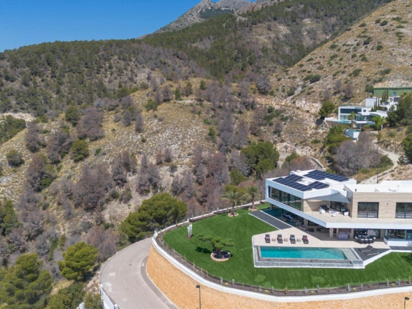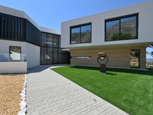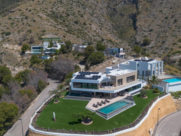 Set on a rare flat plot in the prestigious enclave of Altea La Vella, this extraordinary villa offers total privacy, refined architecture, and sweeping views that span the Bay of Altea, the emblematic old town dome, the Benidorm skyline, and the rugged Sierra de Bernia mountains.