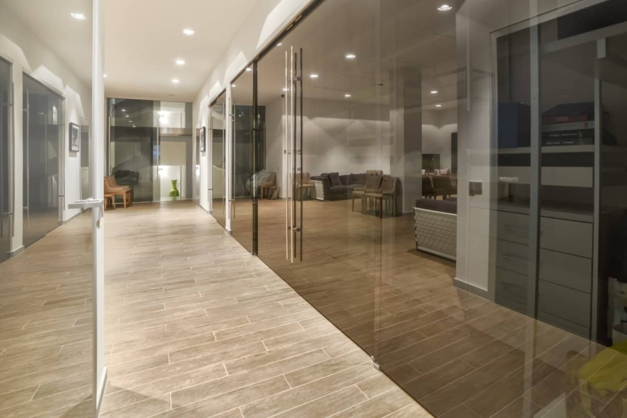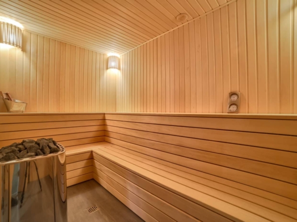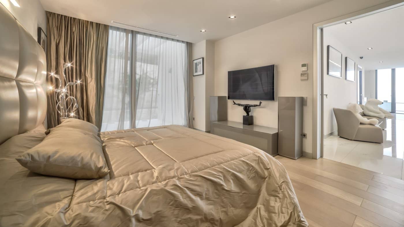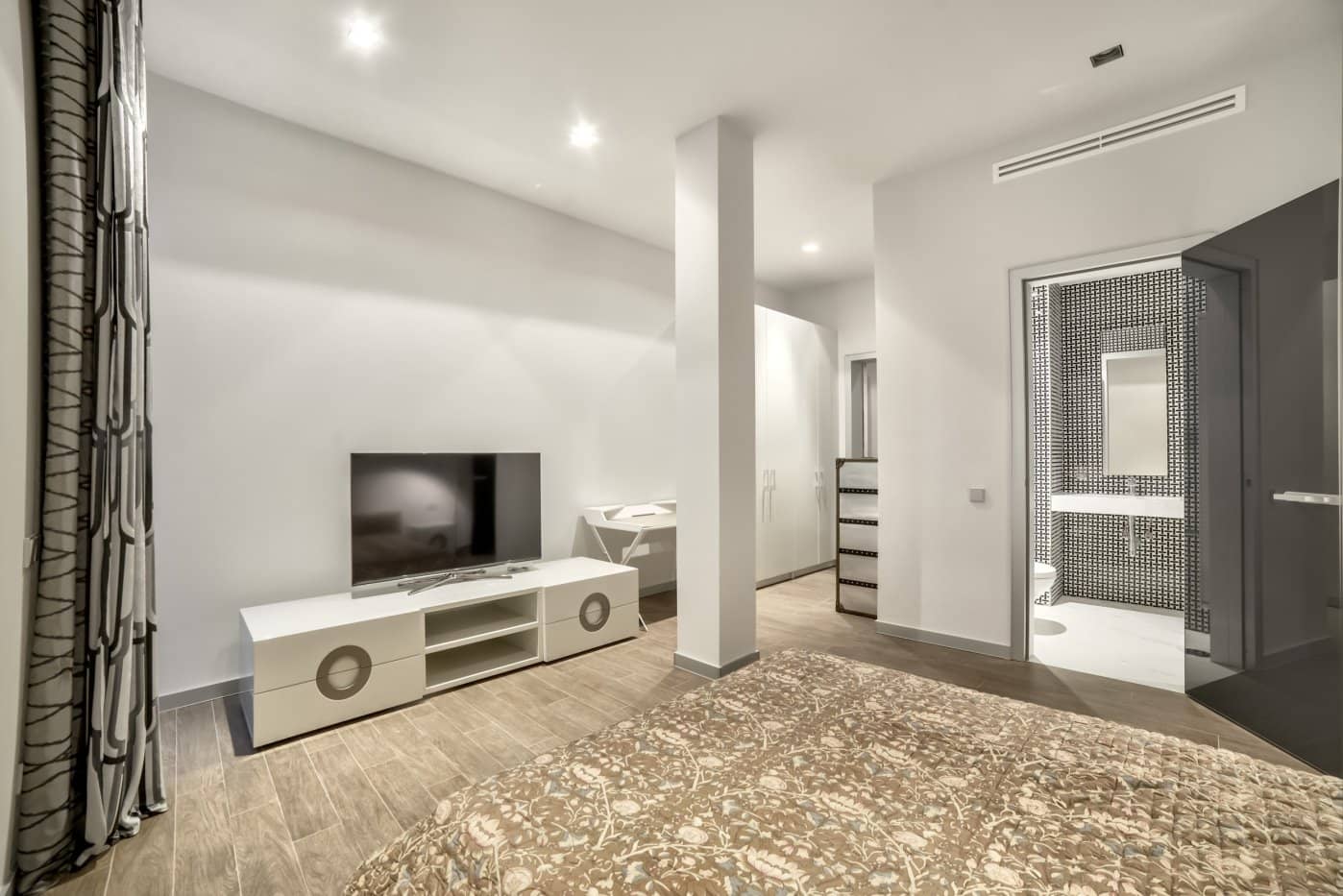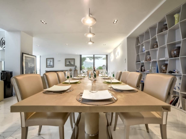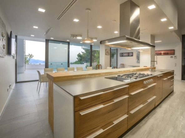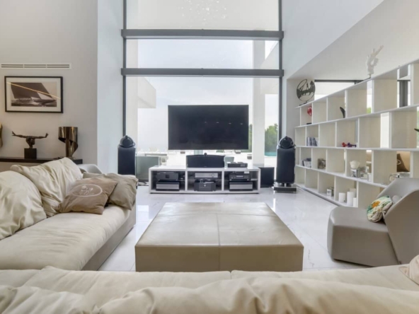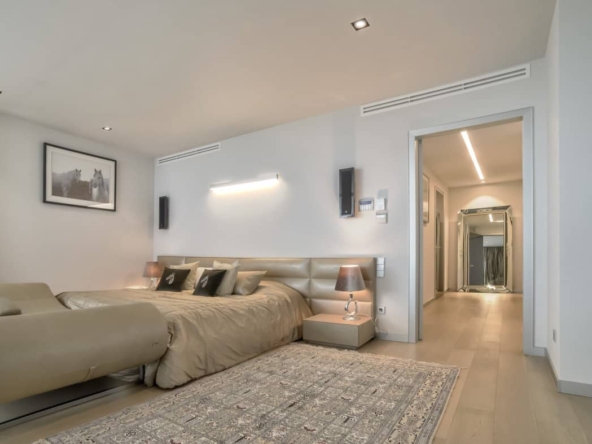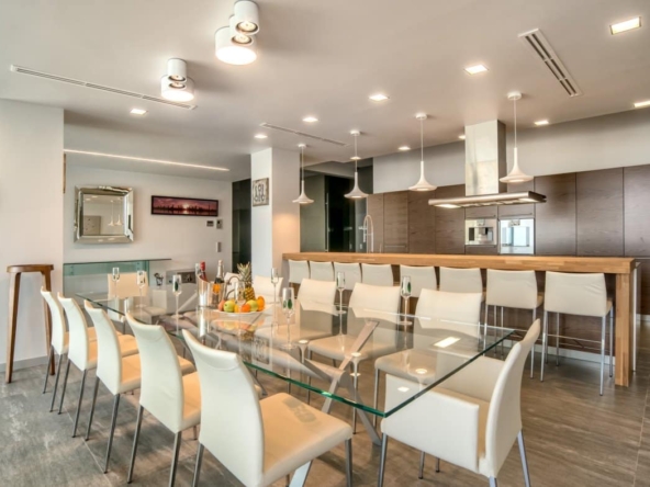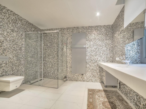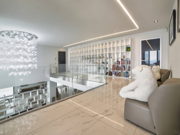 Spectacular luxury villa for sale in Altea Hills. This stunning villa enjoys spectacular panoramic views of the sea and sun all day (South orientation). It is located in a private urbanization with restricted access (very quiet area), 3,5 Km from the sea (Marina Greenwich Yacht Club), near the urban centre of Altea. It is located on three building plots of total 3.080 m2 and has a total constructed area of 1.800 m2 distributed over several floors (with elevator), as follows: on the main floor we have 1 guest toilet, a dressing room of 15 m2, very large open plan living room kitchen of 200 m2 (with fireplace) which gives access to the fabulous outdoor terrace of 250 m2 where we have an incredible pool of 120 m2 with self cleaning and salt system and a tennis court. On the ground floor we have 3 independent areas, the first area has a large dining room kitchen of 60 m2, indoor pool of 36 m2, jacuzzi, gym of 25 m2, beauty salon with hairdresser included of 20 m2, finnish sauna for 6 people, turkish sauna for 6 people, double shower, 1 guest toilet and a wine cellar. The second area is an apartment for the service that consists of an open plan living room kitchen, 1 bedroom, 1 bathroom and a laundry room. The third area would be the guest area that has 3 large bedrooms (25 m2 + 25 m2 + 35 m2), 3 en suite bathrooms, 70 m2 game room, 40 m2 movie theatre (completely soundproofed), 30 m2 office, 50 m2 facilities room and 1 guest toilet. In the basement we have the garage of 75 m2 for 3 vehicles. On the upper floor we have 3 large bedrooms (30 m2 + 25 m2 + 30 m2), 3 large bathrooms en suite (25 m2 + 12 m2 +12 m2), 1 dressing room of 10 m2 and 2 private terraces (10 m2 + 15 m2). This luxury villa has been built in 2016 and is in perfect condition. It is equipped with all the luxuries you can imagine, fendi furniture included, high quality carpentry, ducted air conditioning, underfloor heating, elevator, alarm with security cameras, high end tiles, fully equipped designer kitchen (Gaggenau), Fully equipped designer bathrooms, solar panels, LED lighting, etc. The garden is very beautiful and surrounds the house with fruit trees and tropical trees, in addition, it is low maintenance (automatic irrigation). It also has large outdoor spaces for many vehicles. Without doubt one of the most luxurious villas on the Costa Blanca.