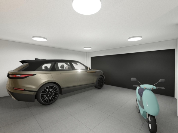 Four spacious bedrooms and two modern bathroomsOpen-plan living area with panoramic windows and integrated kitchenPrivate garage for two carsPlot sizes ranging from 295 to 630 m²Rooftop private pool and pergola with solar panelsNatural stone and white plaster façade reflecting the local aesthetic