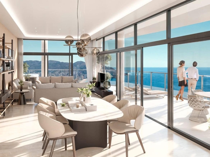 High above the glistening Mediterranean, this remarkable 32nd-floor apartment offers a rare opportunity to experience life from a truly elevated perspective — where panoramic sea views, golden sunsets, and the iconic Benidorm skyline unfold before you in all their splendour.