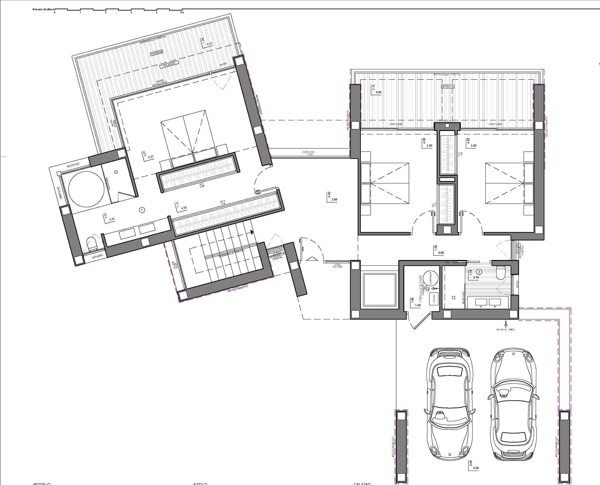 The “night area”, made up of two bedrooms, a suite with bathroom, walk-in wardrobe. And a private terrace and a shared bathroom are on this floor. All the bedrooms have access to a terrace from where you can enjoy one of the best sea views on the Costa Blanca. Waking up while watching the sun rising on the horizon of the Mediterranean is one of the many luxuries this villa has to offer you.