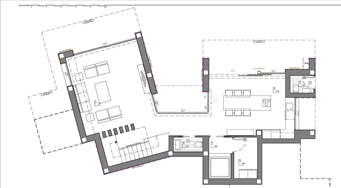 On the lower floor we can find the living area, where the wide open spaces. And the natural light are the main attractions. And where the frontier between the inside and the outside blend together thanks to its large panelled glass walls that allow access to the garden and pool area.
