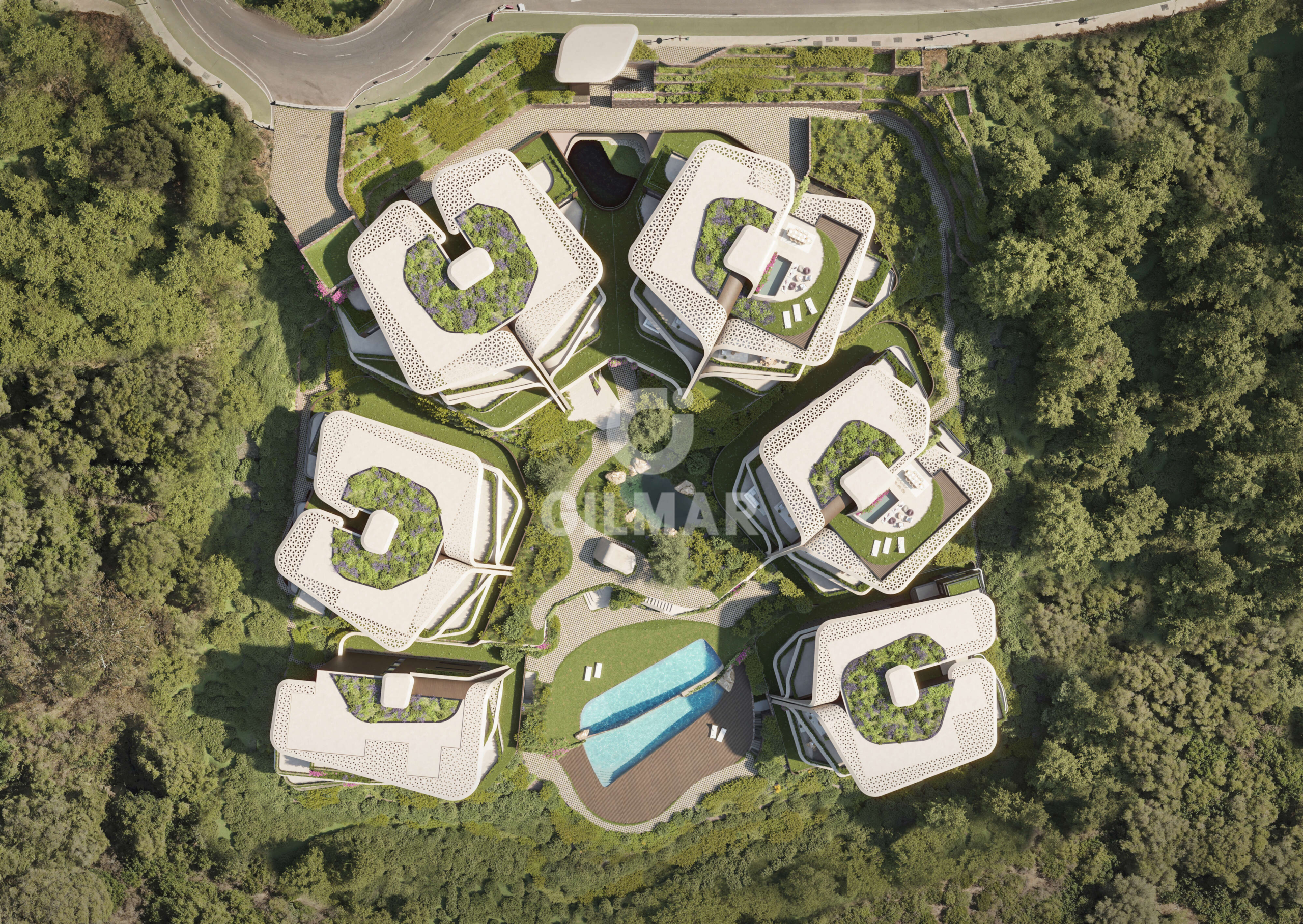 Our proposal had to be space and light to achieve differential comfort. A harmonious architecture adapted to a landscape that is already beautiful due to its orography and nature. Where quality and attention to detail were at the service of excellence and essentiality. The privilege of living in a cozy place in balance with the environment. In short, we propose a pioneering residential complex due to its life cycle analysis, which aspires to be certified as BREAAM Excellent and WELL Gold and to become a benchmark at a European level, evaluating its performance under the LEVEL(s) 3 framework, the most advanced. We invite you to a preserved, quiet and safe place. An oasis where the private and the social find their balance.