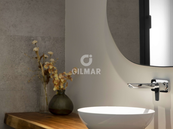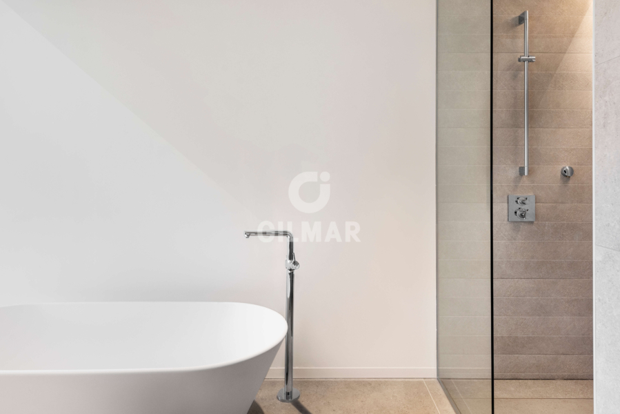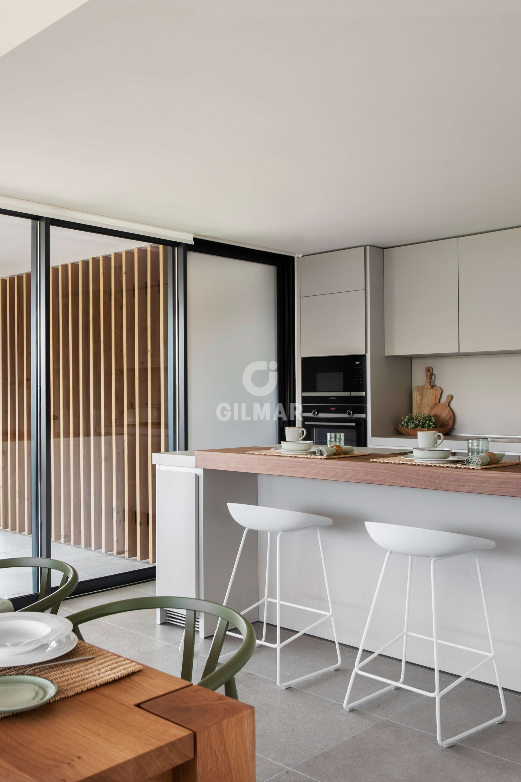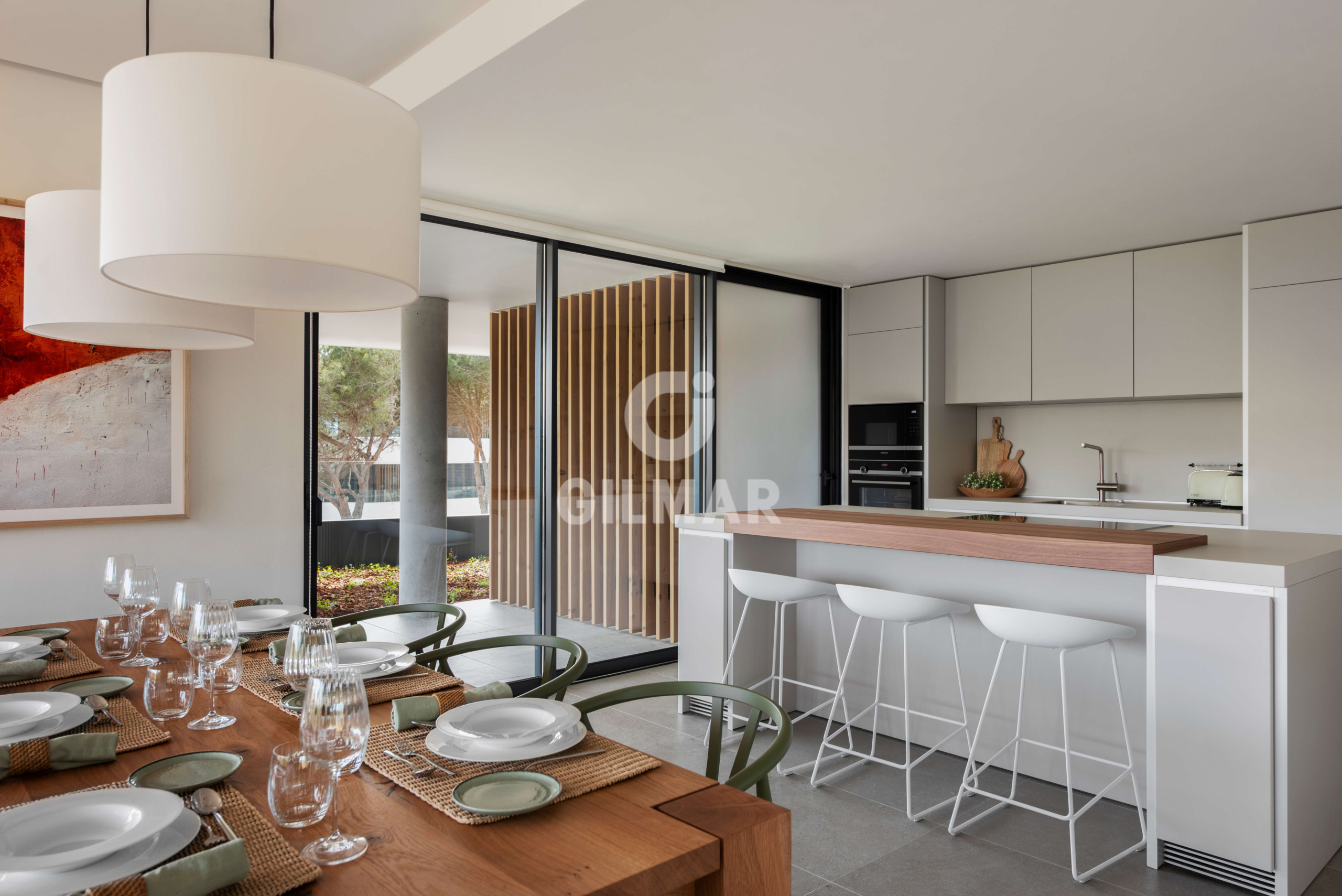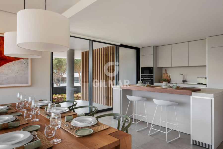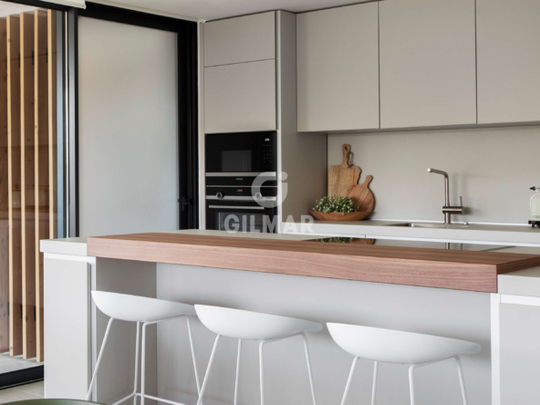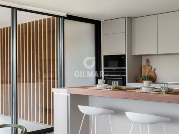 The kitchen, with its modern design and fully equipped with high-end appliances, offers more than enough space for cooking enthusiasts. It also includes a guest toilet, perfect for welcoming visitors without disturbing the privacy of the main bedrooms.