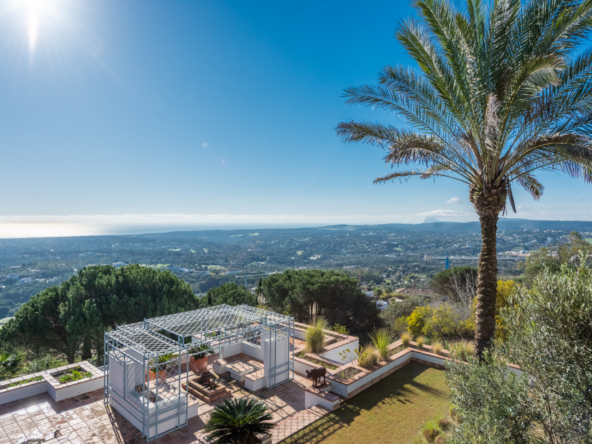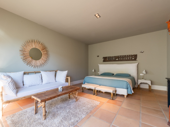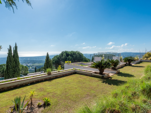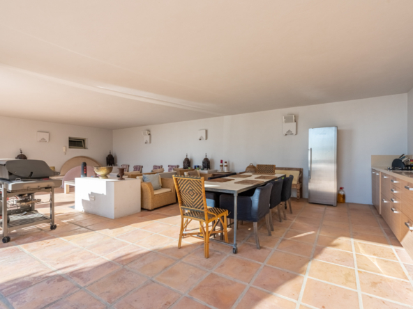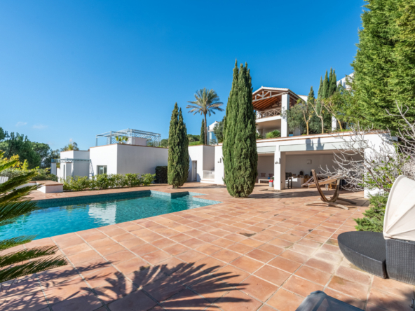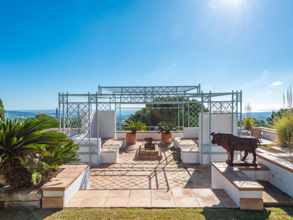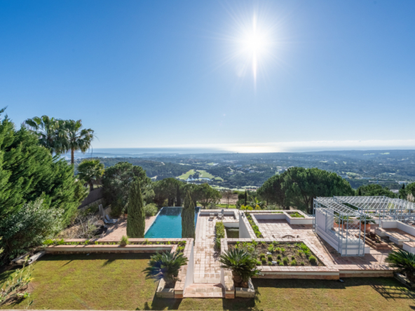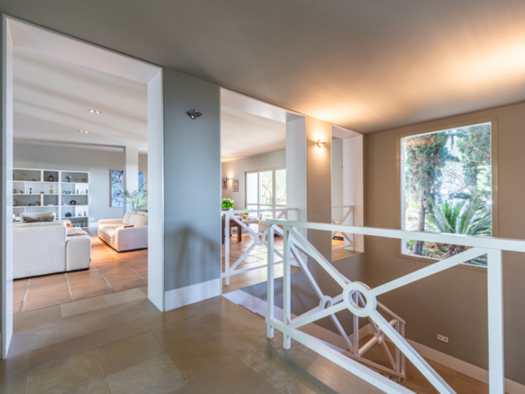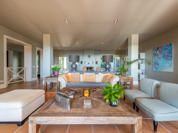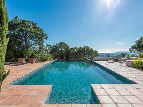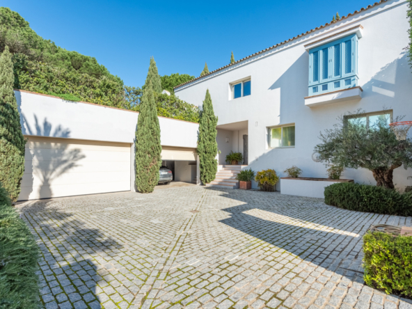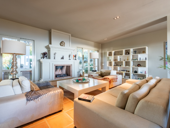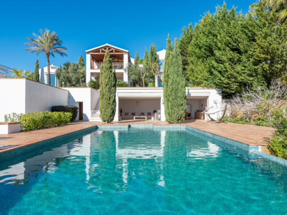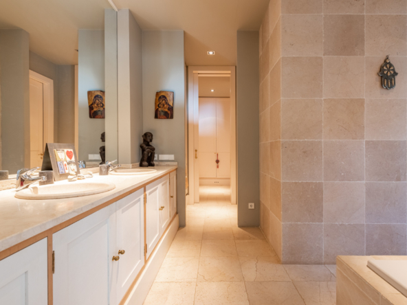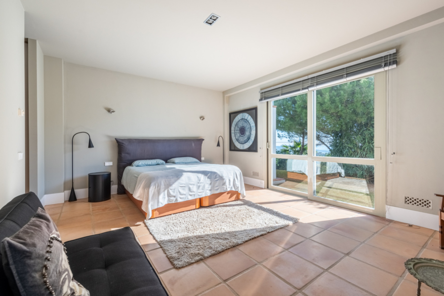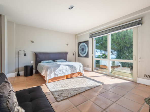 Mediterranean influences blend harmoniously with sleek modern design, complemented by iconic artwork and furnishings. The main residence offers generous living spaces, a separate dining room, three spacious bedrooms with en-suite bathrooms, a dressing room, and an 80 m² study highlighted by an imposing antique fireplace. In addition, the property features a gymnasium, a cinema room and extensive terraces that complete its amenity offerings.