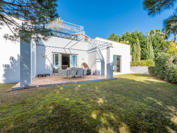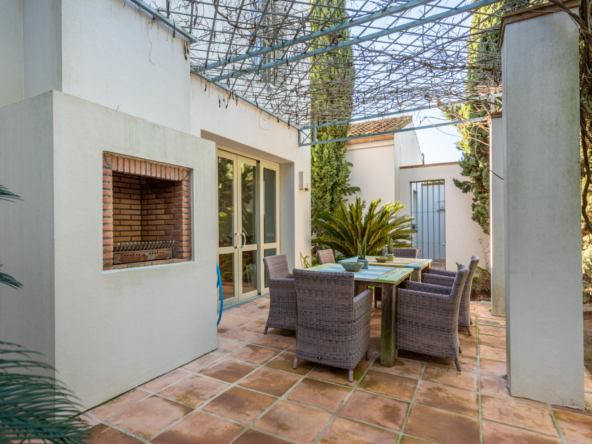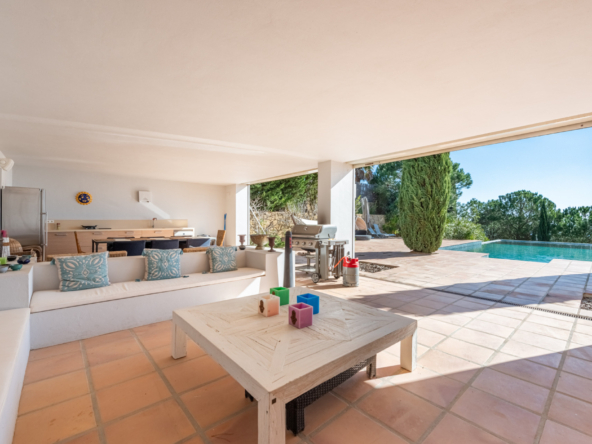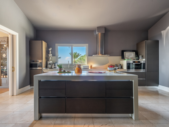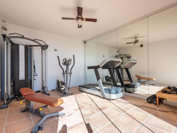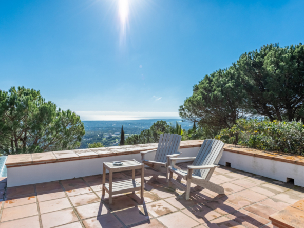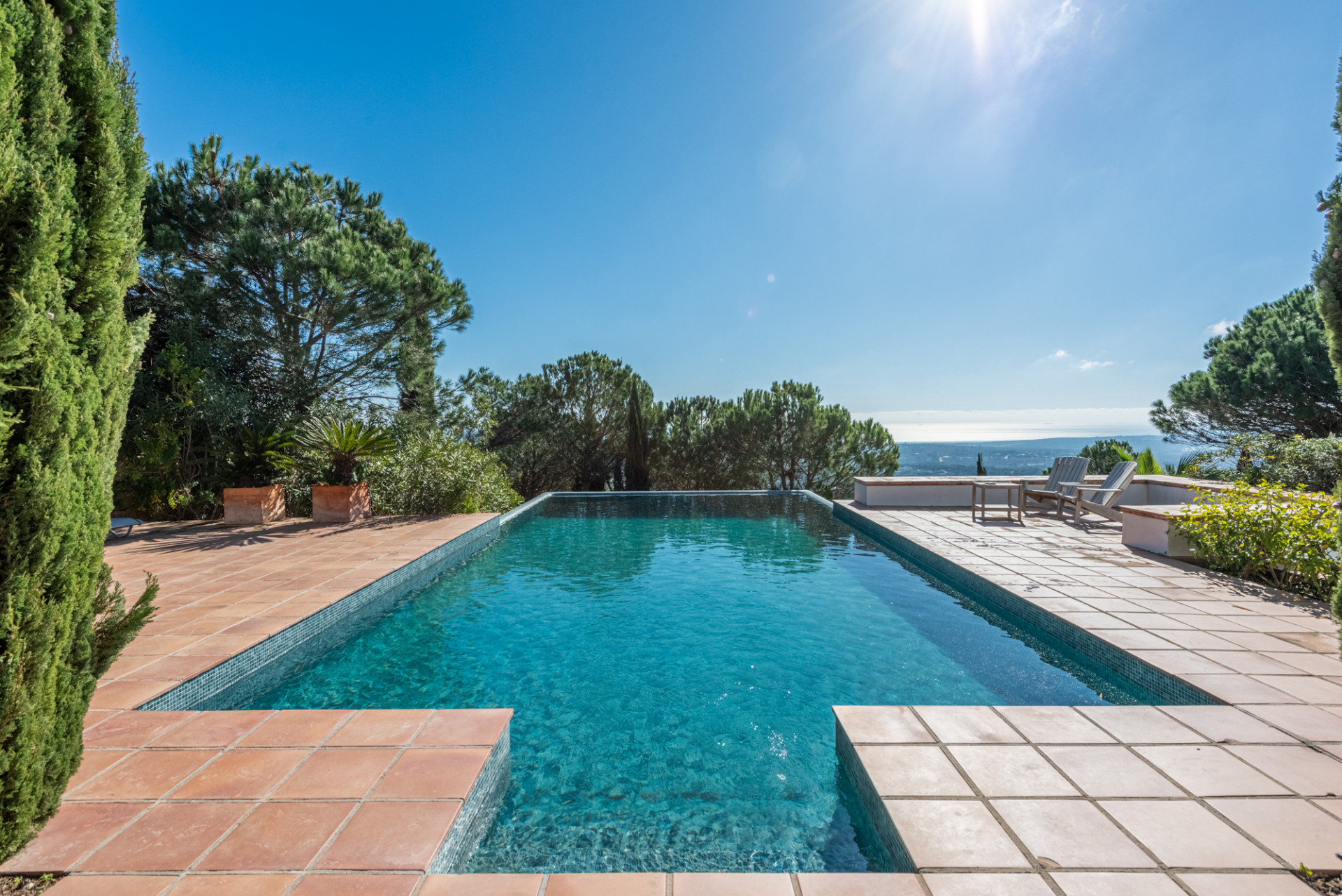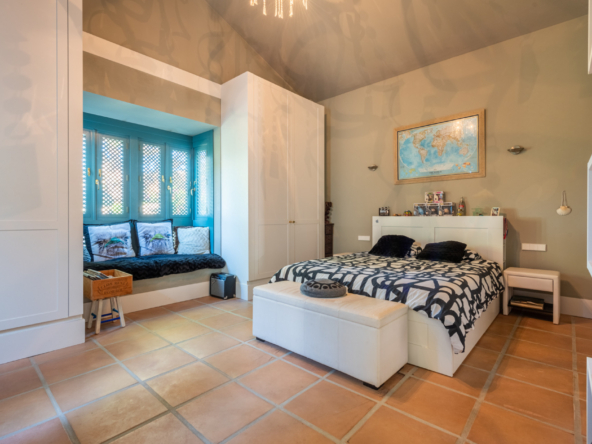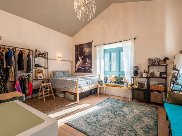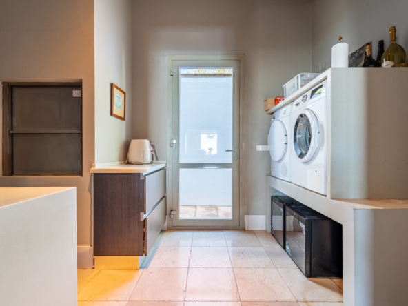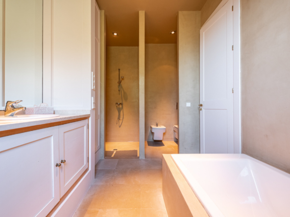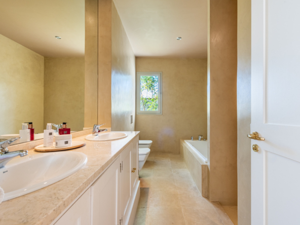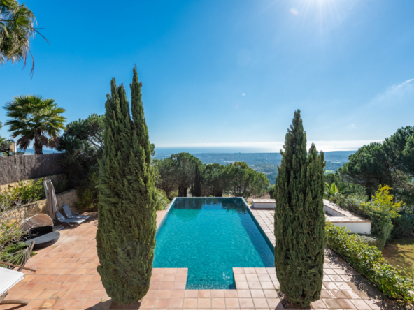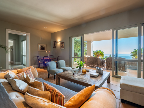 Mediterranean influences blend harmoniously with sleek modern design, complemented by iconic artwork and furnishings. The main residence offers generous living spaces, a separate dining room, three spacious bedrooms with en-suite bathrooms, a dressing room, and an 80 m² study highlighted by an imposing antique fireplace. In addition, the property features a gymnasium, a cinema room and extensive terraces that complete its amenity offerings.