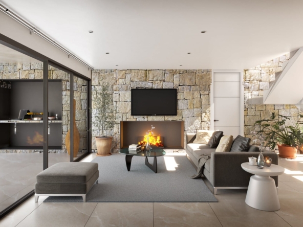 The expansive living room is light and airy, with an open kitchen fully equipped with modern appliances. The living room offers direct access to the cozy terrace, where you can enjoy outdoor living and panoramic views of the lake. The garden is beautifully landscaped and provides plenty of space for relaxation or creating a sun terrace.