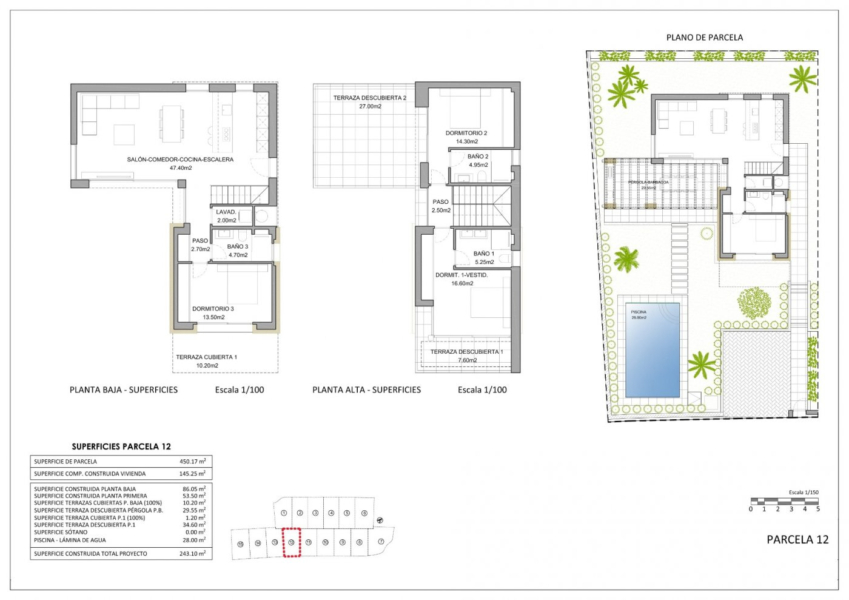 3 bedroom – 3 bathroom – Build 145 m2 – Plot 505 m2