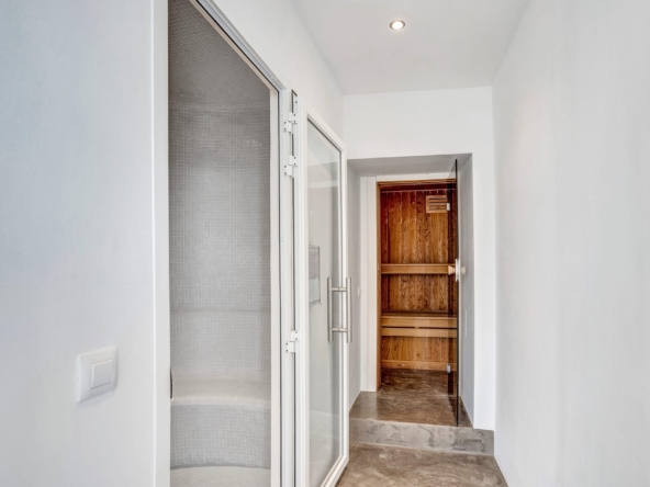 Private spa – Turkish steam sauna, Finnish sauna & outdoor jacuzzi with sea viewsHome cinema & bar/games room for ultimate entertainmentYoga/stretch area for wellness and relaxationShaded rear terrace – a cool retreat during summerIntelligent home system with motorized shutters & lighting