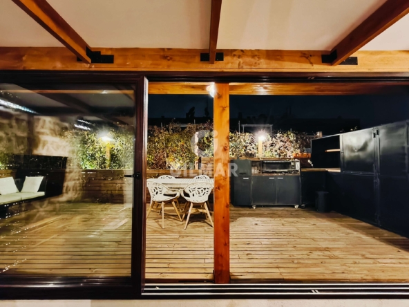 The apartment features a generous living room with large windows that provide plenty of natural light. The kitchen is fully equipped with high-end appliances and has a separate dining area. There are three bedrooms, including a master bedroom with an en-suite bathroom, and two additional bathrooms.