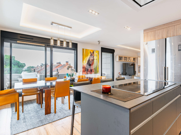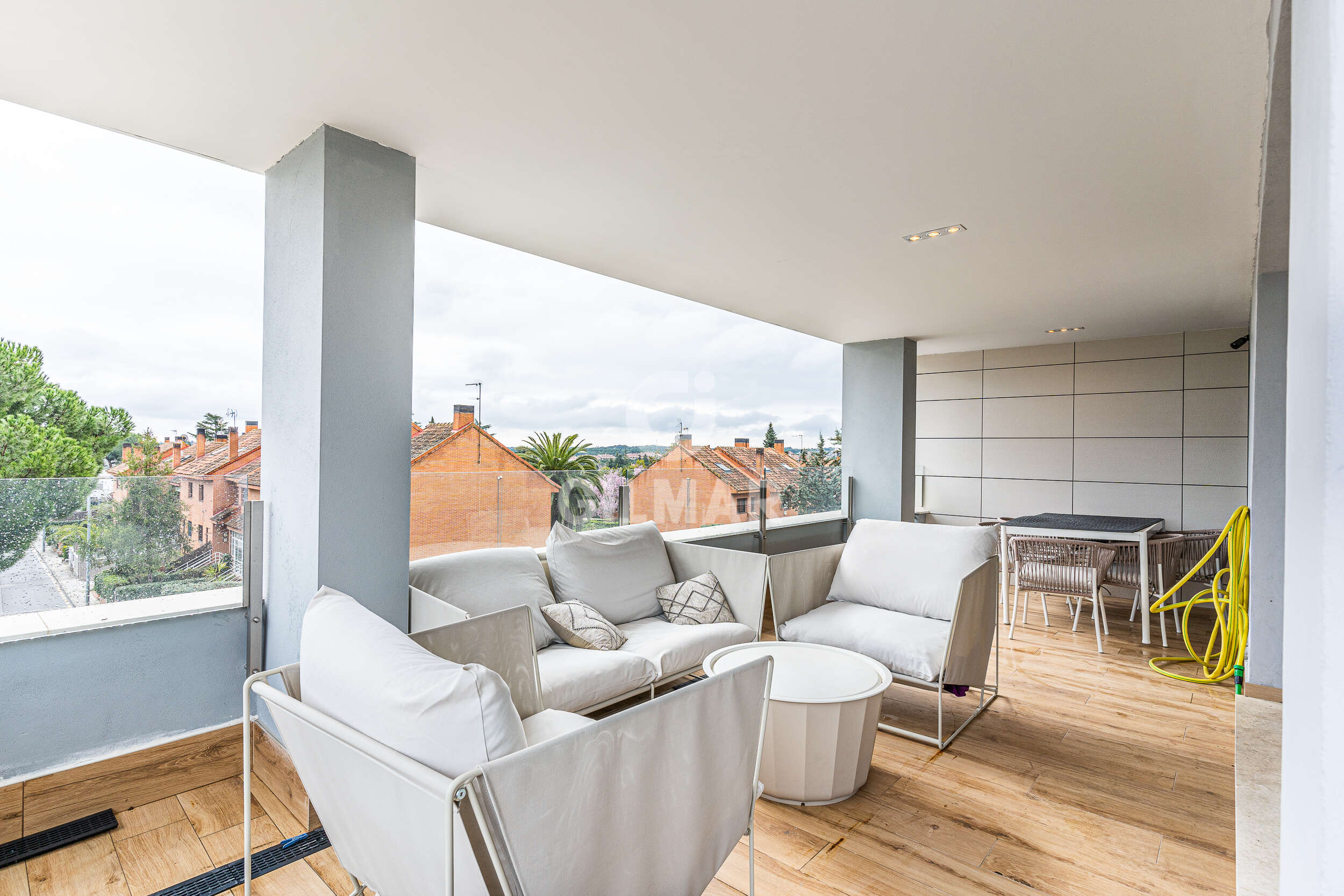 Discover luxury and exclusivity in this stunning penthouse located in Yucatán-Cornisa, Las Rozas, one of the most sought-after areas in the northwest of Madrid. This 272 m² penthouse stands out for its modern and carefully designed layout, perfect for enjoying maximum comfort and functionality. It features 4 spacious bedrooms, 3 full bathrooms, a fully equipped kitchen, and a light-filled living room thanks to its orientation and large windows. Built in 2021, the property is in impeccable condition, boasting top-quality finishes such as wooden flooring, gas heating, air conditioning, and home automation for complete control of your home.