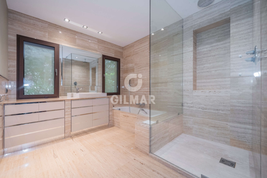 GILMAR Zona Norte presents, EXCLUSIVELY, an impressive villa of over 1,000 m² located on a 3,800 m² plot. The property stands out for its innovative architectural design, incorporating a beautiful English patio with four olive trees and a fountain that invite you to fully enjoy the home.