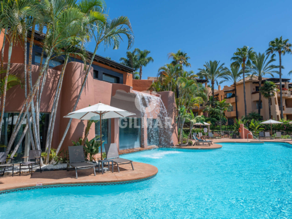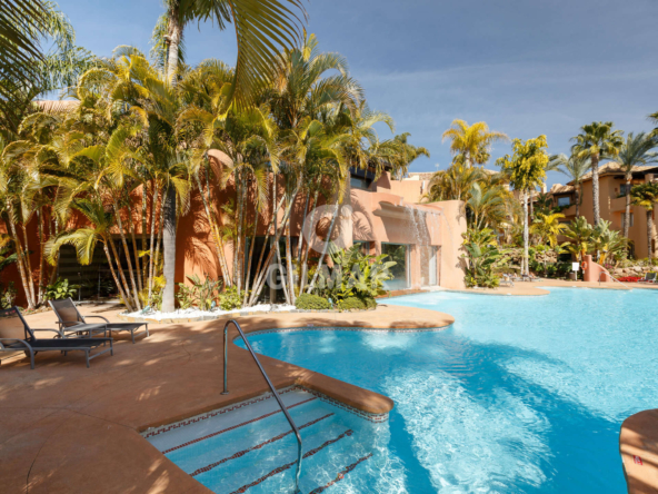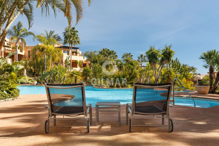 Mansión Club is a luxury complex located between Sierra Blanca and Marbella with access control and 24-hour security, designed by the great architect Melvin Villarroel, it was built with great taste and with high quality materials. The urbanization has all kinds of amenities, lush gardens with tropical plants and trees, outdoor pool with waterfall, heated indoor pool, sauna and gym, all for residents only.