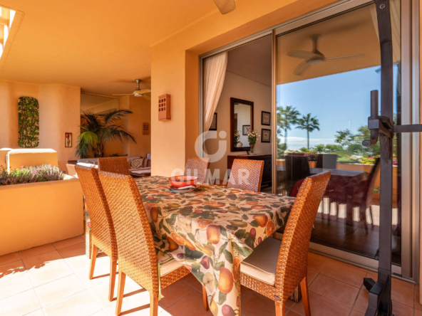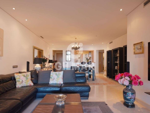 Spectacular apartment in one of the most luxurious and exclusive areas of Marbella, Sierra Blanca, on the Golden Mile of Marbella. It has 227 m2 built, south-west facing and sea views. It is distributed in a spacious living room with access to a large and sunny terrace with sea views, 3 bedrooms and 2 bathrooms, one en-suite, and a fully equipped kitchen. The master bedroom has a dressing room, en-suite bathroom and access to the terrace. It also includes a large garage space and a storage room.