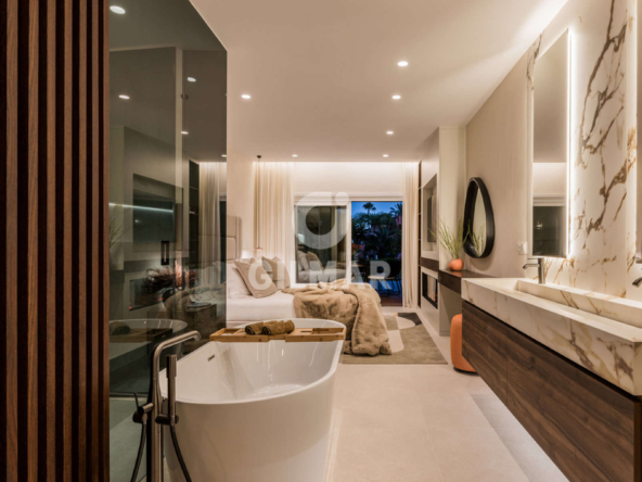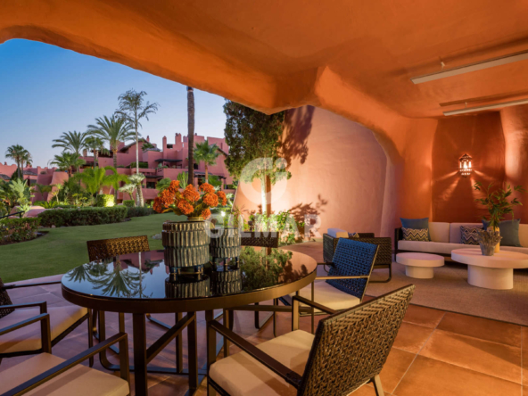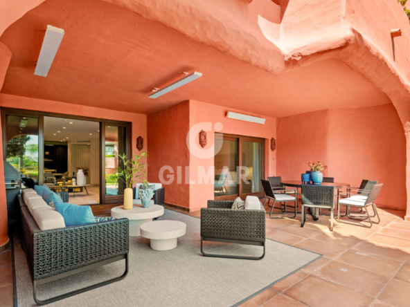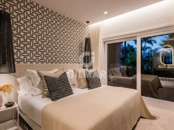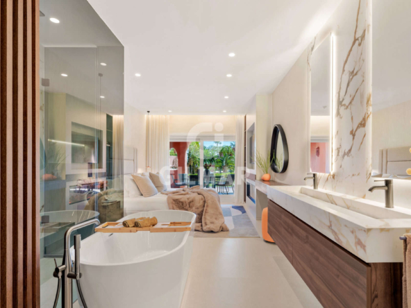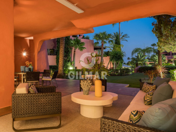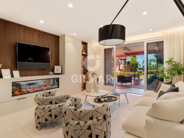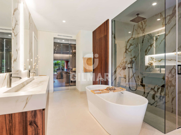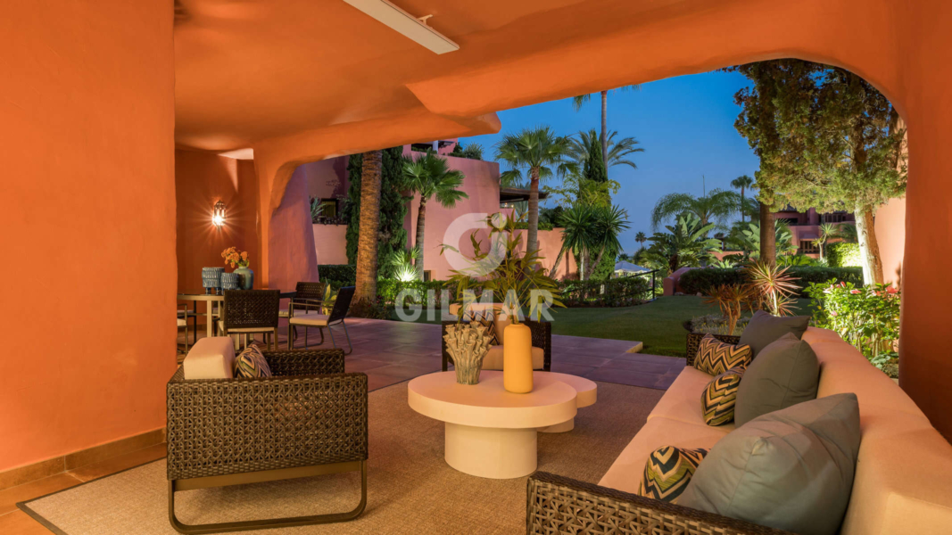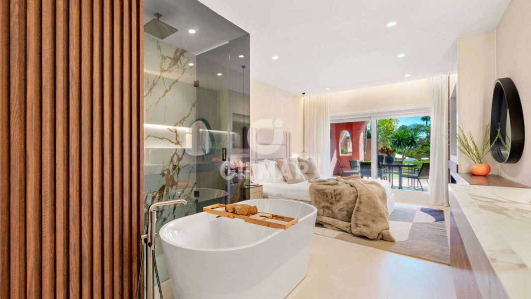 This stunning south facing 3 bedroom, 3 bathroom ground floor flat has been completely renovated to the highest standards and offers beautiful views over the lush gardens of the complex. With its fantastic finishes and top quality materials, this flat is without a doubt a gem in the exclusive development of Torre Bermeja, in the prestigious area of New Golden Mile, Estepona.