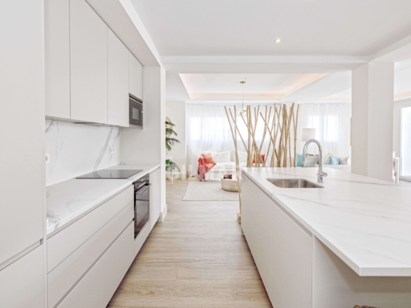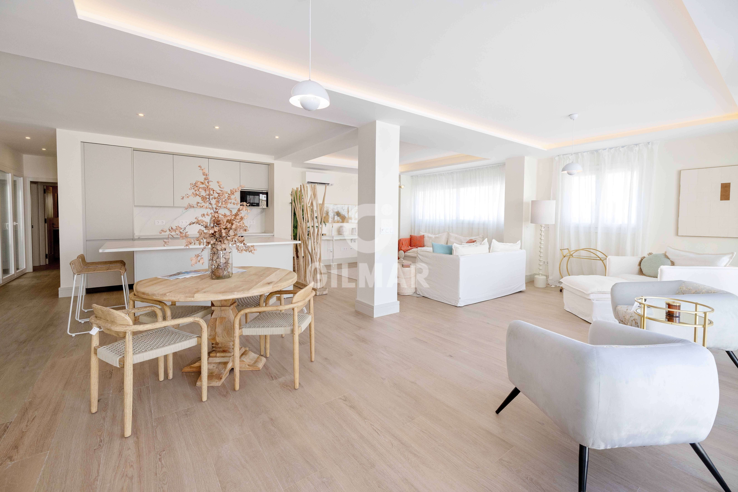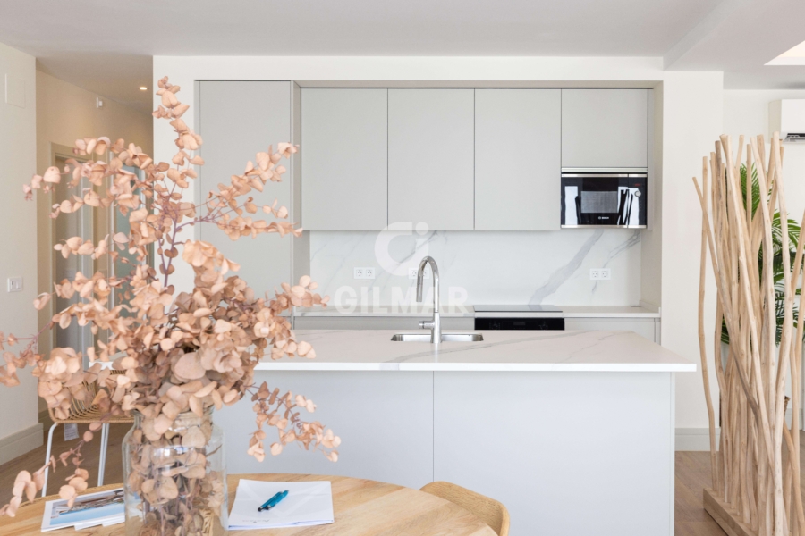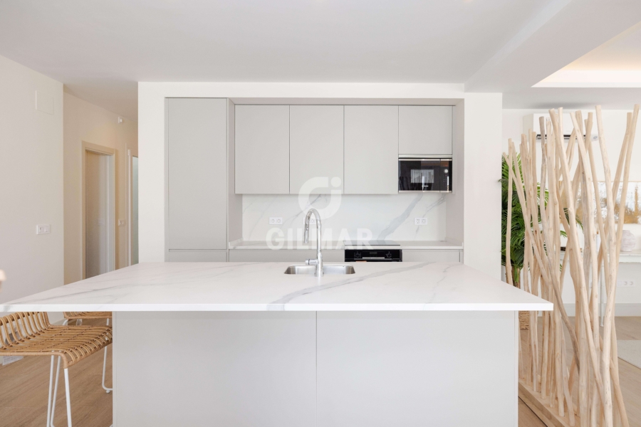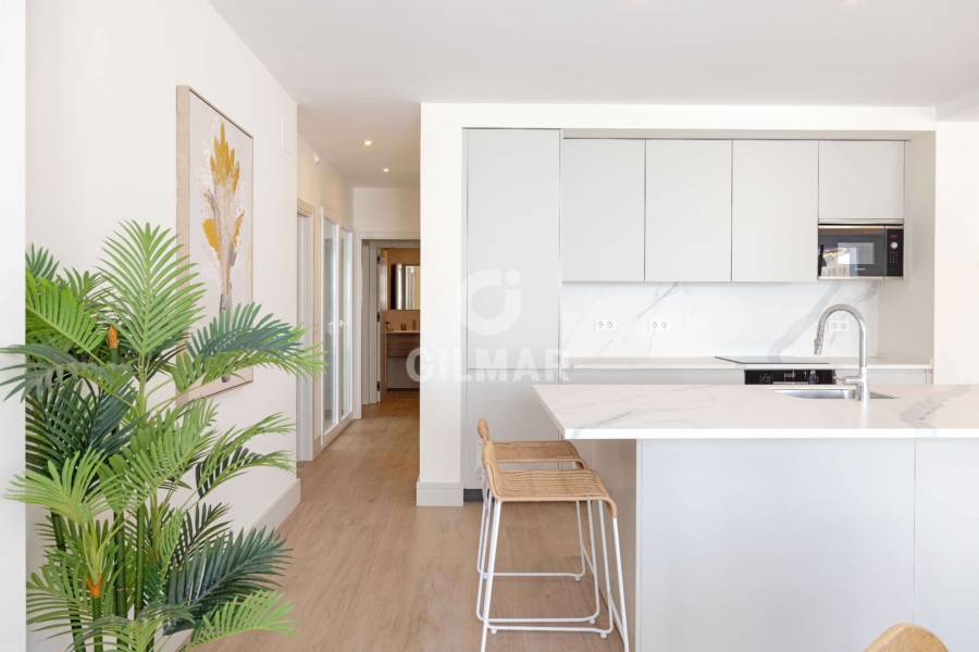 With a constructed area of approximately 164 square meters, this home offers a generous interior space distributed across a large open-plan living, dining, and kitchen, where elegance and high-end finishes are appreciated in every detail. Large windows flood the space with natural light and connect directly to an impressive private terrace of over 60 square meters, a perfect place to enjoy the Mediterranean climate year-round. The living area consists of three spacious and bright bedrooms, accompanied by three full bathrooms, designed with fine materials and a contemporary aesthetic that combines functionality and comfort. The home also has a separate laundry room, providing extra convenience and order to everyday life. The home has a parking space on the same property, which provides added value and extra convenience.