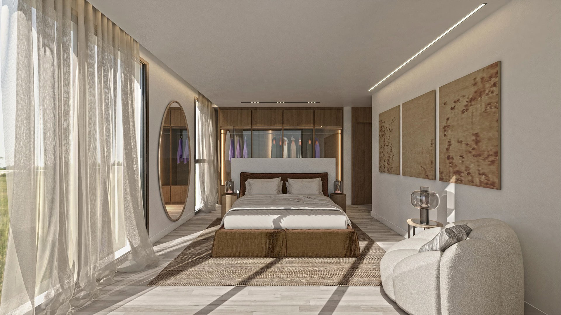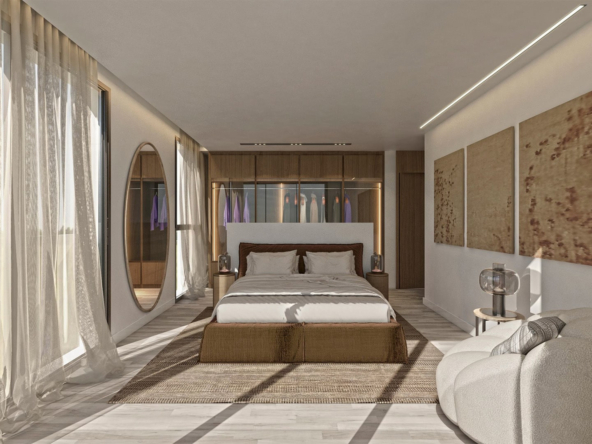 The apartment’s design maximises comfort and natural light, featuring an open-plan living and kitchen area that opens onto a spacious 30m² covered terrace, ideal for outdoor dining and relaxation. Both bedrooms, including a master suite with an ensuite bathroom and walk-in wardrobe, open directly onto the terrace, creating a seamless blend of indoor and outdoor living.