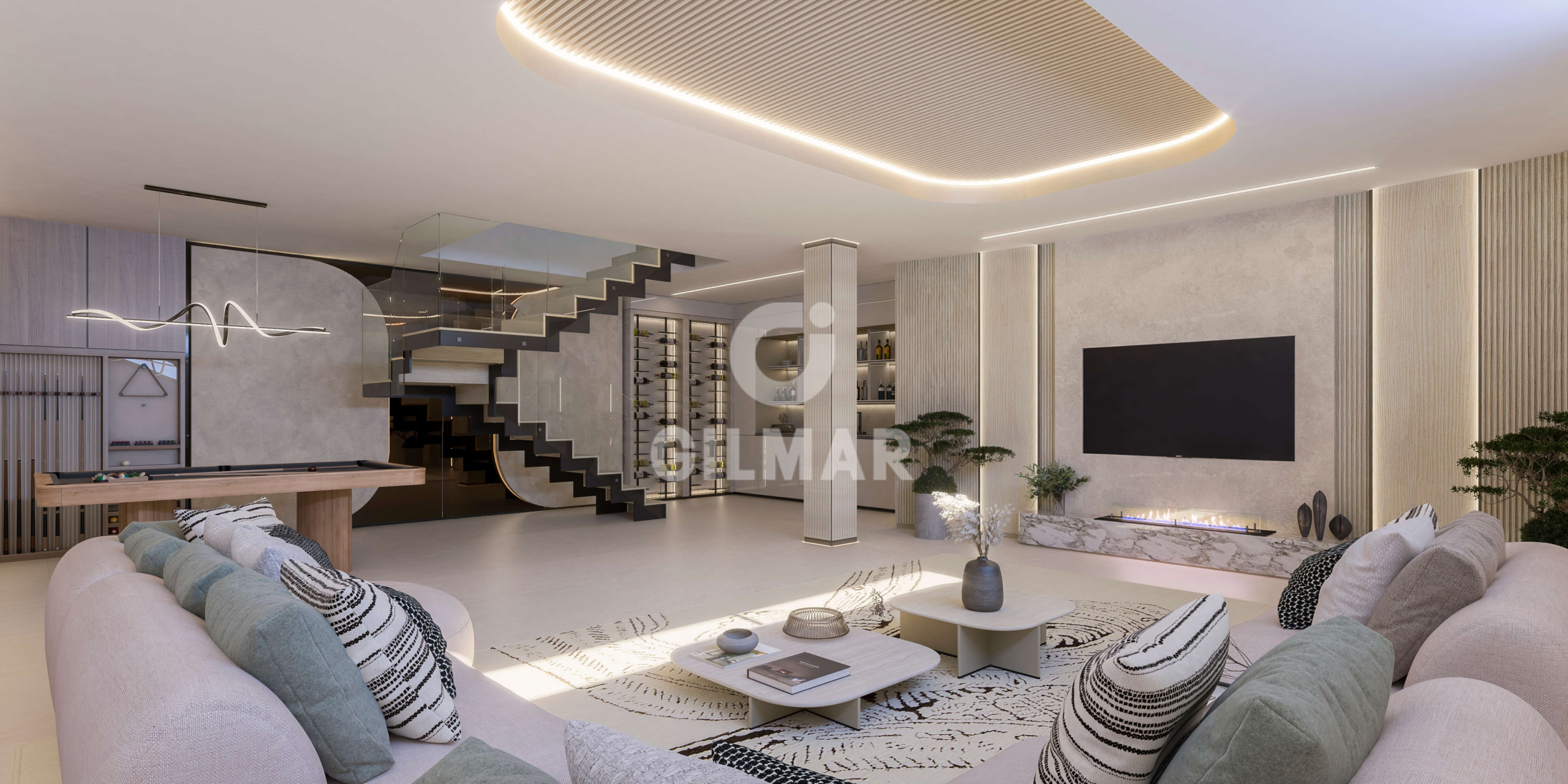 an infinity-style outdoor pool, spa with heated indoor pool, fully equipped gym, and a state-of-the-art golf simulator, all designed to elevate everyday living.