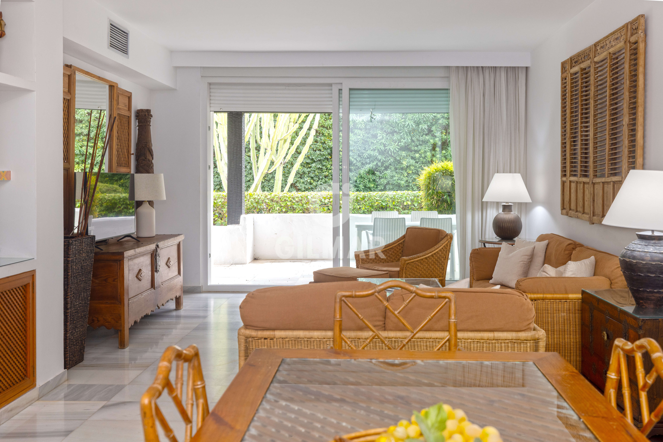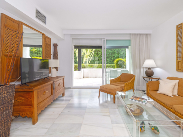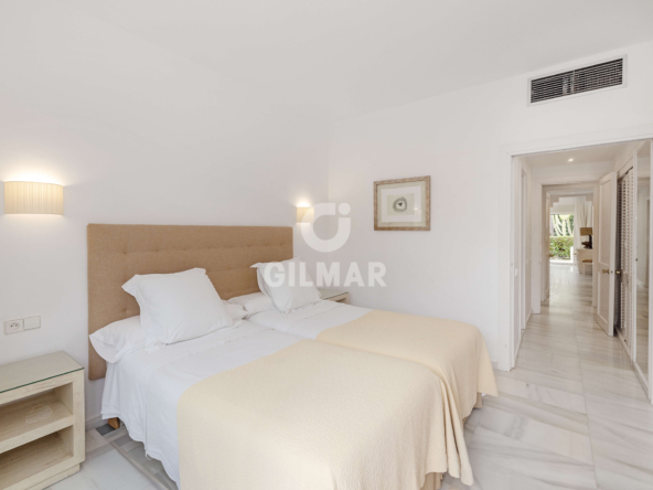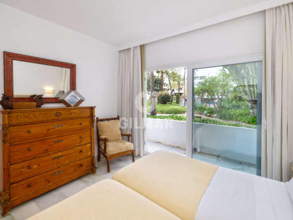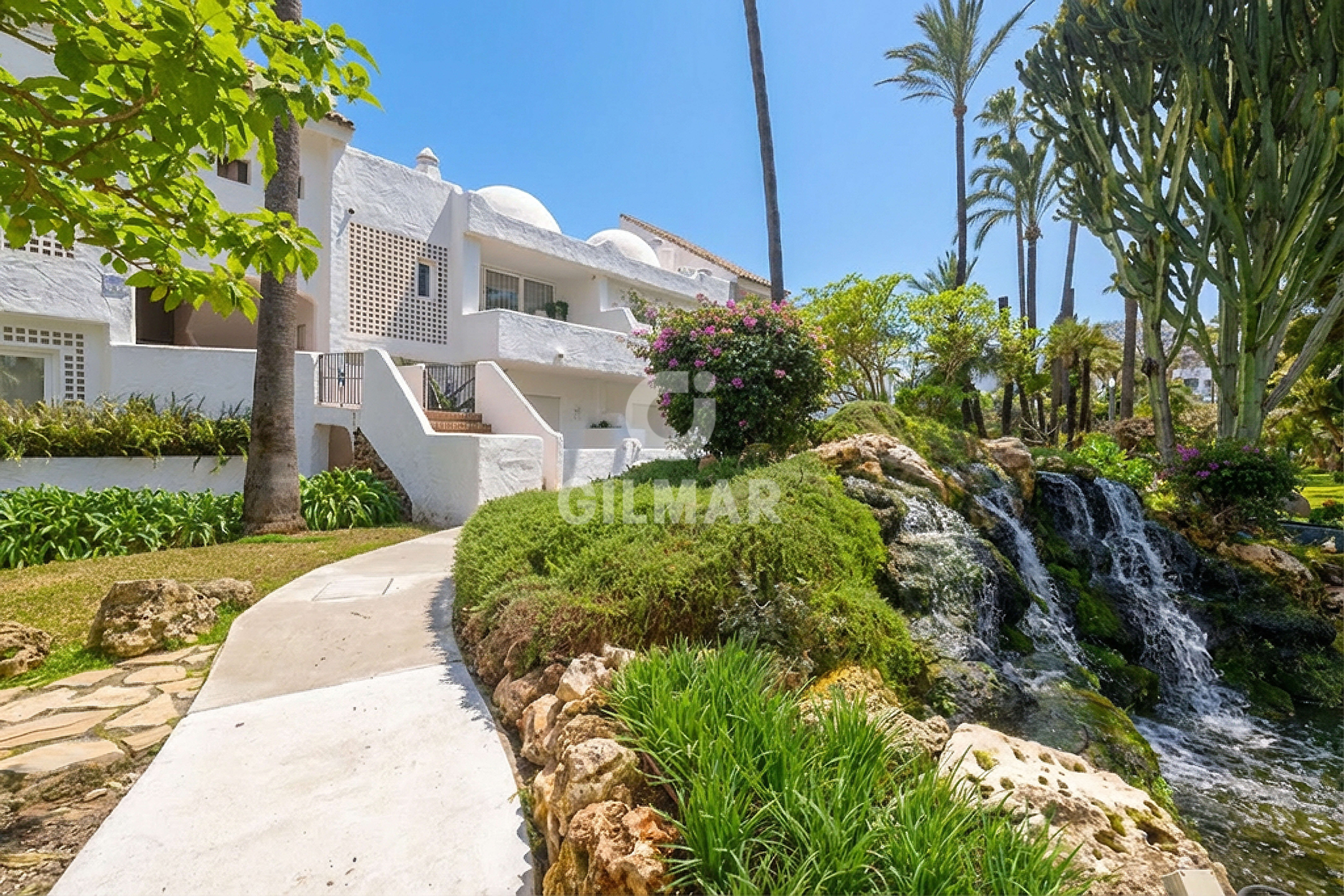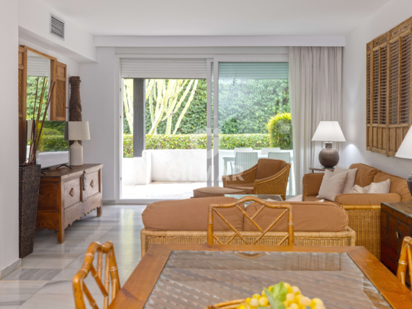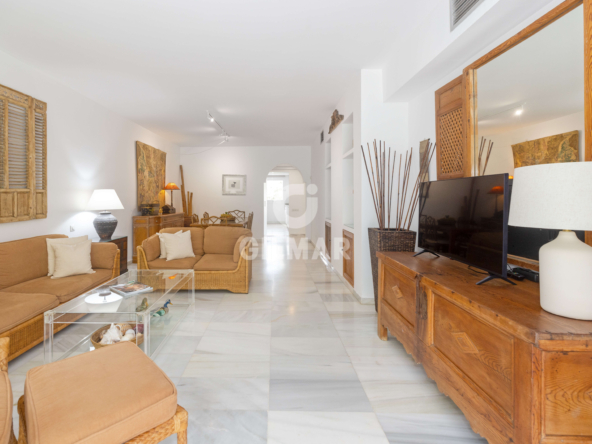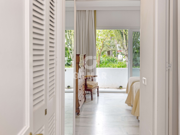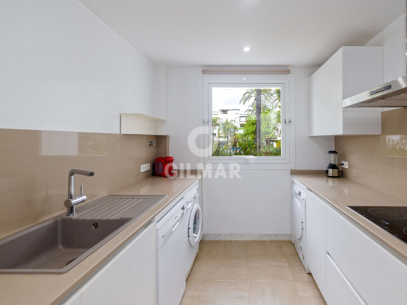 Just 100 metres from the sea, in one of the most sought-after addresses in Puerto Banús, this exclusive apartment redefines the concept of beachfront living. A property that captivates with its natural light, generous proportions, and the harmony of a setting where lush tropical gardens and the soothing sound of water create an atmosphere of true well-being.