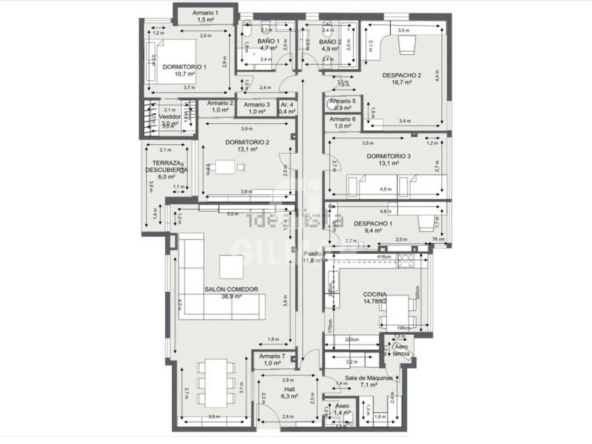 The property includes a private parking space in a covered garage and a storage room — essential added value in such a privileged location.