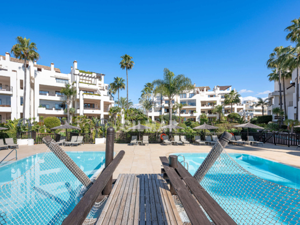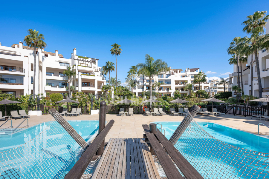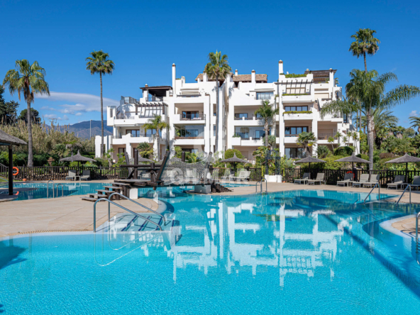 Bahía del Velerín is one of the most exclusive beachfront communities on the New Golden Mile, ideally located between Marbella and Estepona. Surrounded by lush tropical gardens, the complex offers residents access to a spectacular pool area with a seasonal snack bar, 24-hour security, and direct access to one of the finest beaches in the area.