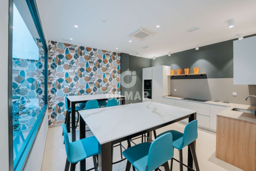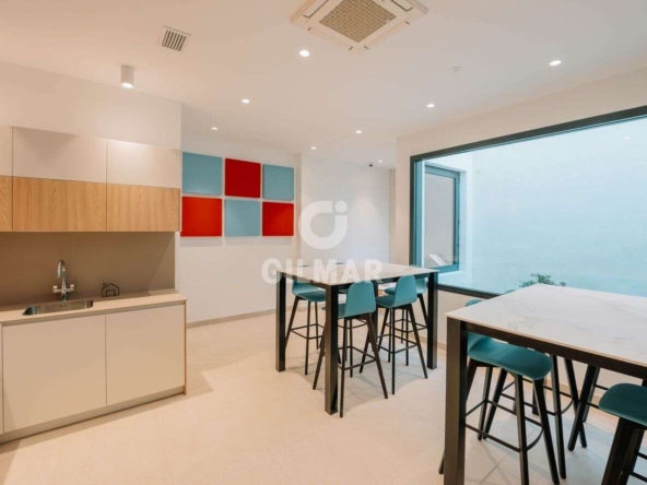 Step inside and discover a stylish open-plan layout, designed with both comfort and sophistication in mind. The spacious living and dining area is filled with natural light and opens directly onto the private terrace with glimpses of the sea, creating an effortless indoor-outdoor flow.