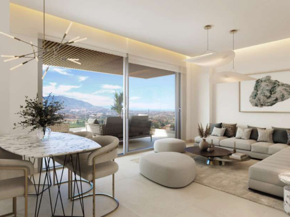 Each apartment has been thoughtfully designed to maximise natural light, space, and comfort. Open-plan living areas flow seamlessly onto spacious terraces, offering breathtaking views of the golf course, mountains, and the Mediterranean Sea. Large double-glazed windows, underfloor heating, air conditioning, and high-end finishes ensure year-round comfort, while some penthouses and ground-floor units provide the option of a private pool and outdoor kitchen, perfect for entertaining. The bedrooms are tranquil retreats with elegant bathrooms and bespoke interior details.