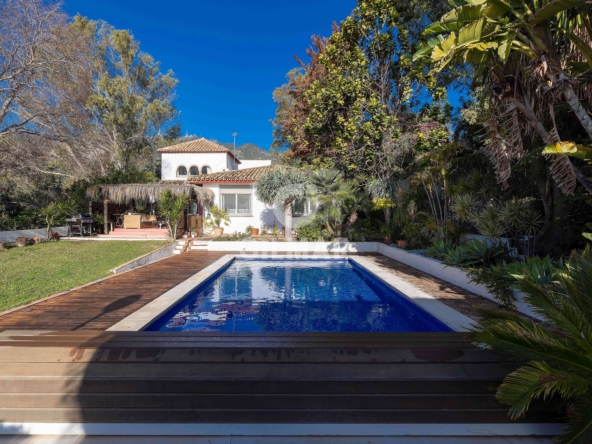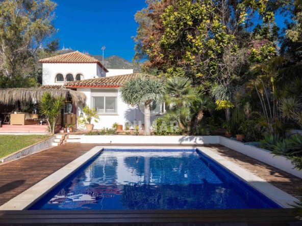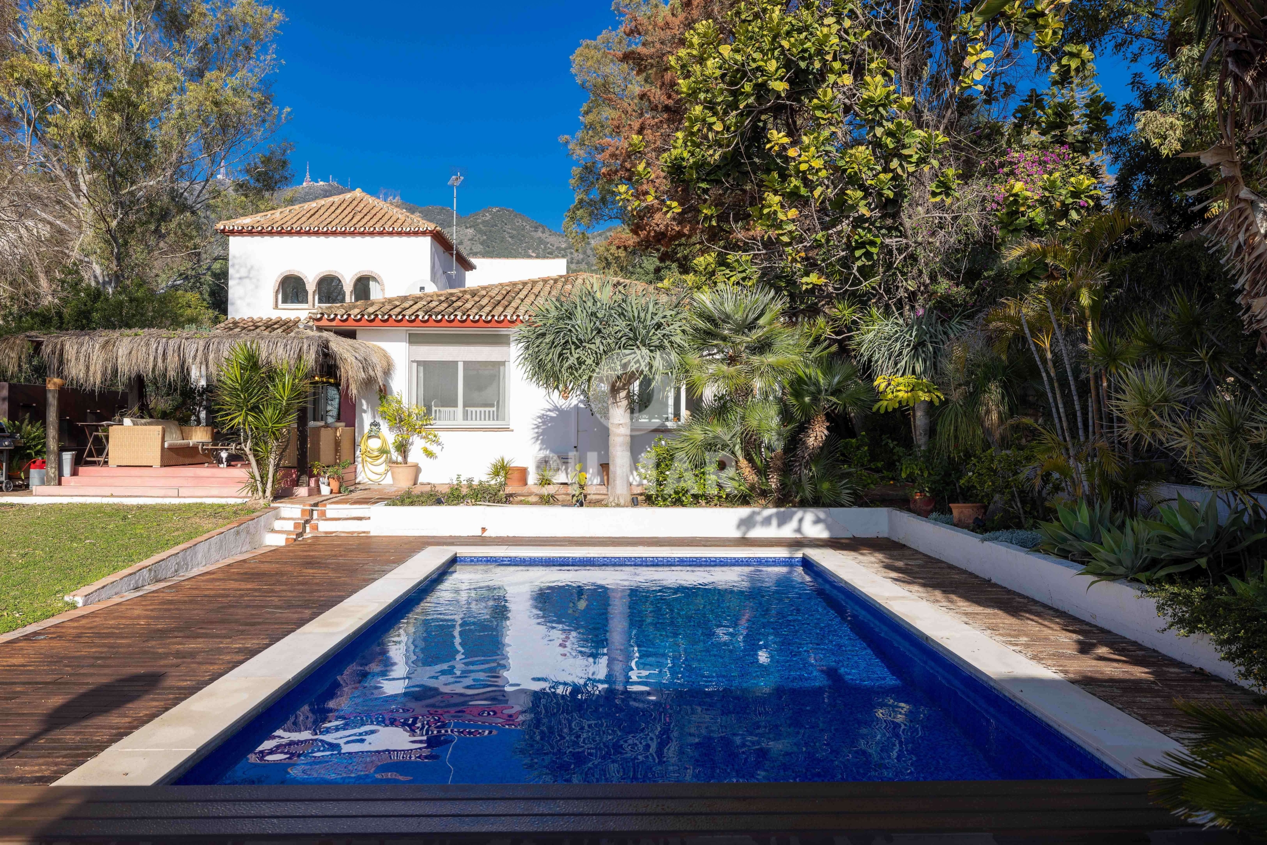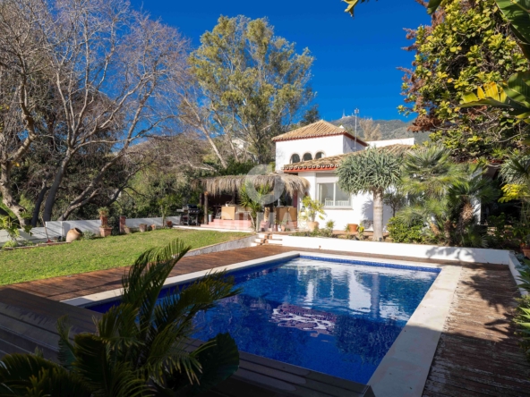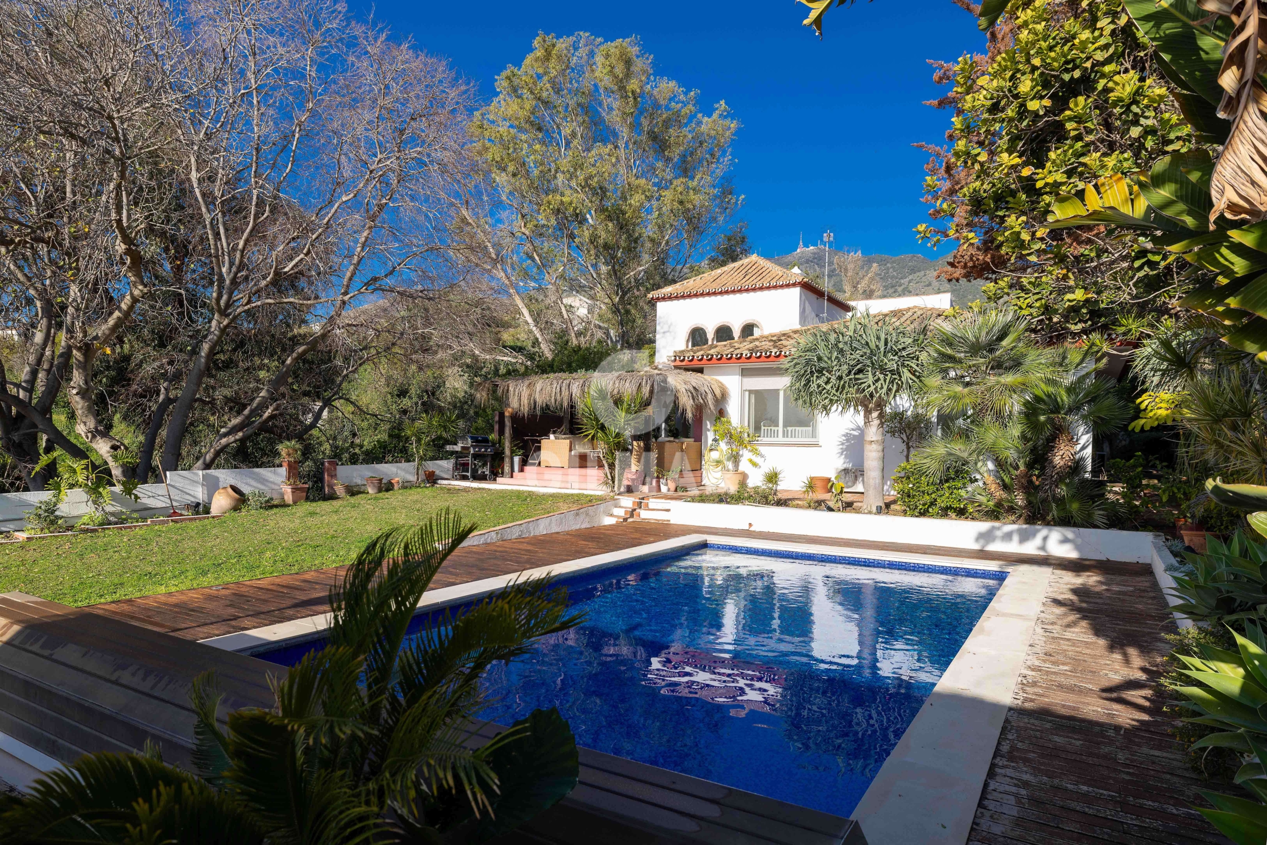 We presents this exclusive detached villa in Benalmádena Pueblo. Located in the charming enclave of Benalmádena Pueblo, this stunning villa stands out for its elegance and spaciousness. Built in 1982, the property sits on a generous 3,274 m² plot, offering an outdoor space that combines an exquisite garden and a private pool—ideal for enjoying the Mediterranean climate and panoramic sea views.