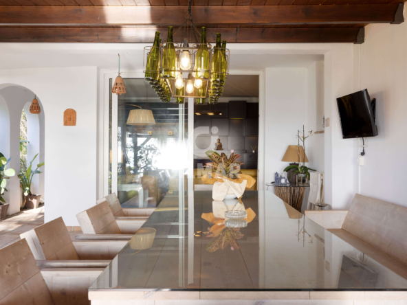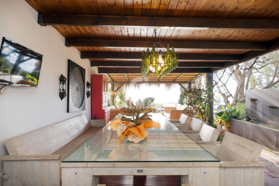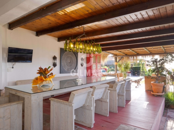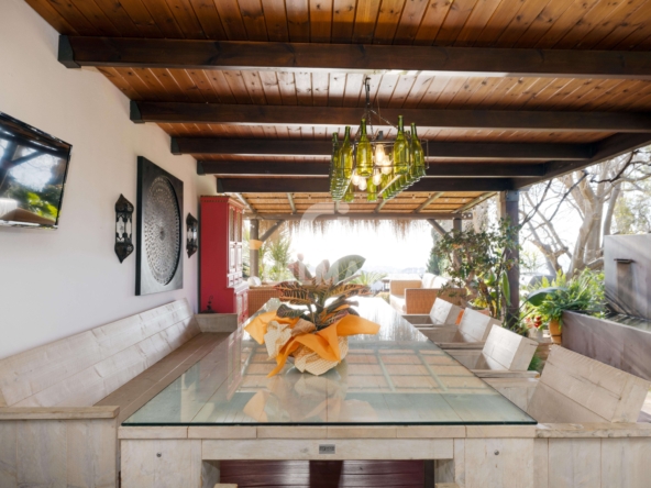 With a built area of 505 m², this villa features 7 bedrooms and 4 bathrooms, all designed with impeccable taste. The bedrooms are spacious and bright, perfect for creating a cozy and private atmosphere. The bathrooms, with a modern style, are equipped with all the necessary comforts for a luxurious experience. The fully equipped kitchen is ideal for culinary enthusiasts, while the living room, with large windows and rustic ceramic floors, blends natural light with an elegant style.