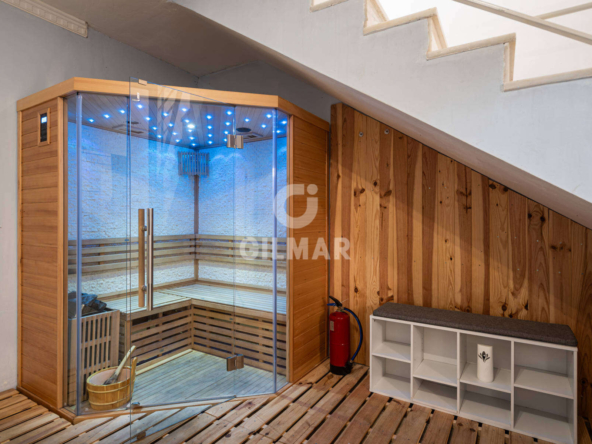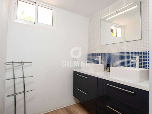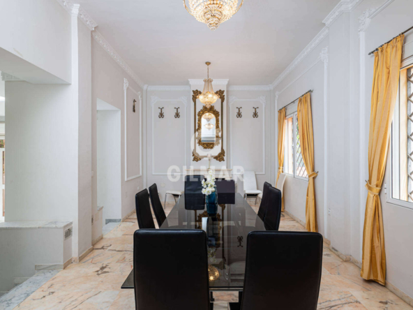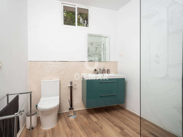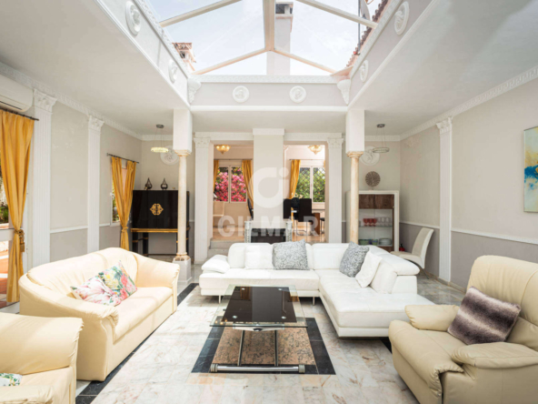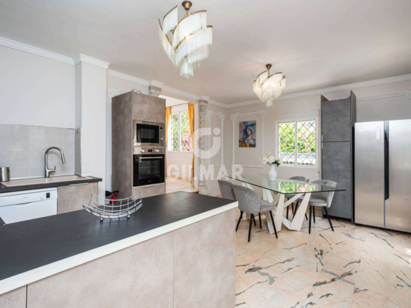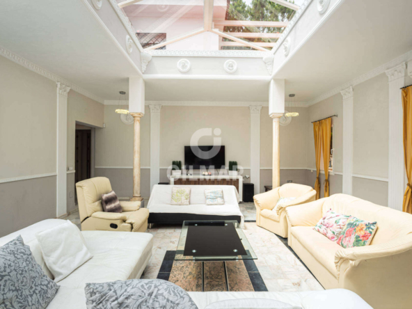 Built in 2001 and updated a few years ago, this villa stands out for its elegance and spaciousness. On the ground floor, we find a large living room with high glass roof ceiling, a large kitchen with a magnificent fully equipped dining room, and two bedrooms with complete bathrooms. There is also an adjacent flat with a living room, two bedrooms and two bathrooms.