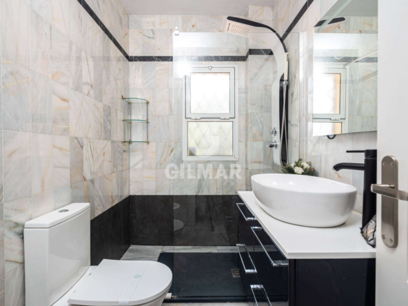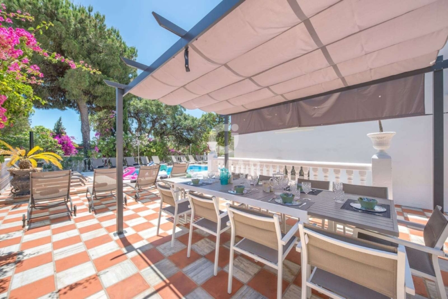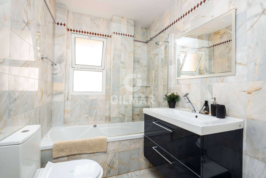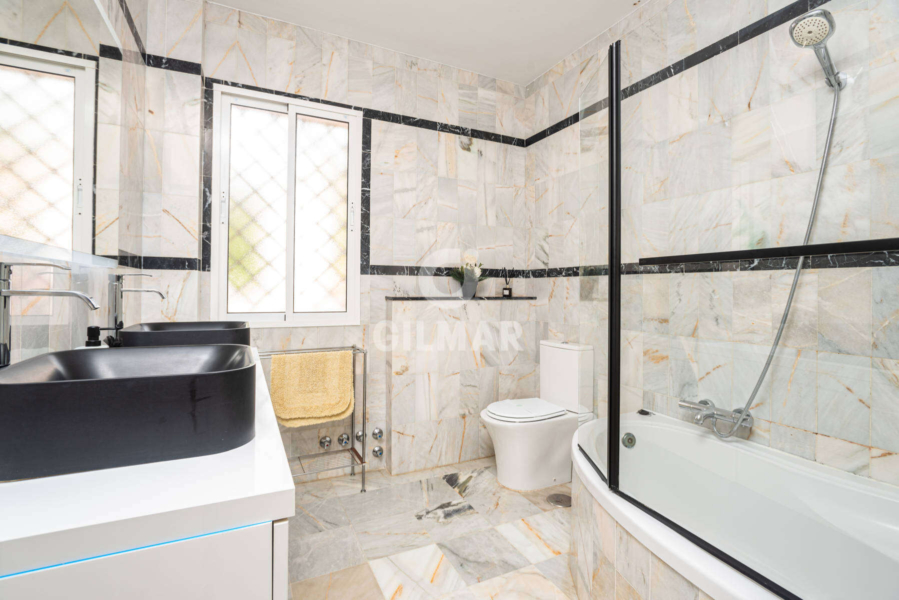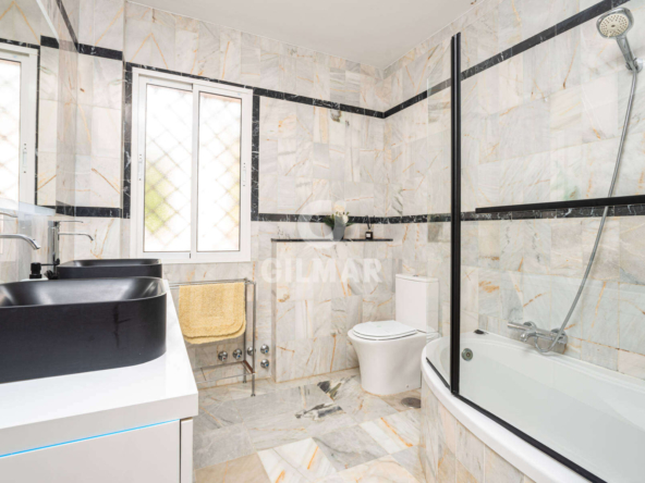 This villa is in a privileged location, surrounded by supermarkets, restaurants, golf courses and the Cabopino Marina. It also has direct access to the A7 in both directions, which facilitates mobility to other areas of the Costa del Sol. South East facing.