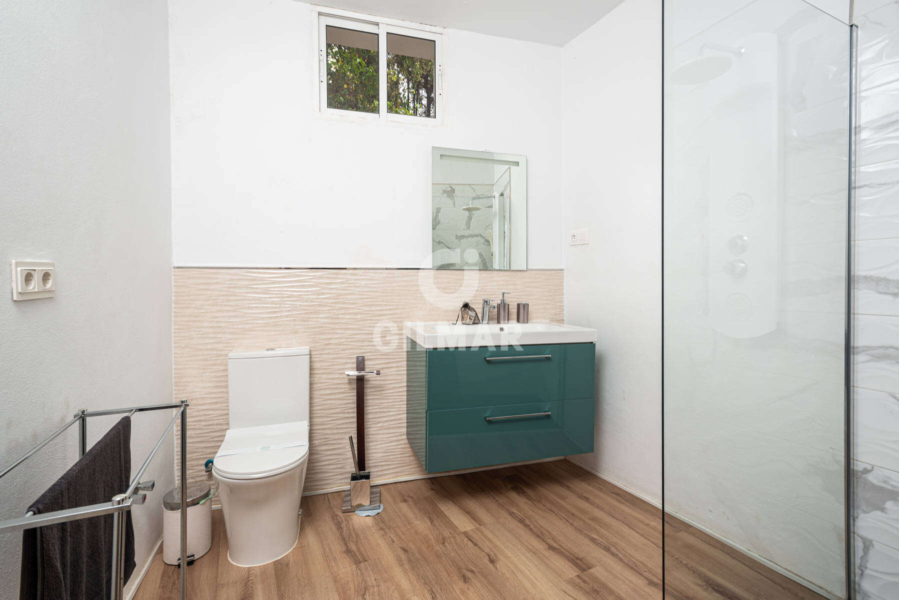 The first floor houses two bedrooms with a common bathroom, a master bedroom with en-suite bathroom and two terraces offering breathtaking views. In the semi basement, we find a gymnasium, a laundry room, a living room, three bedrooms and two complete bathrooms. From this floor you have direct access to the plot.
