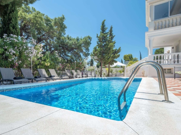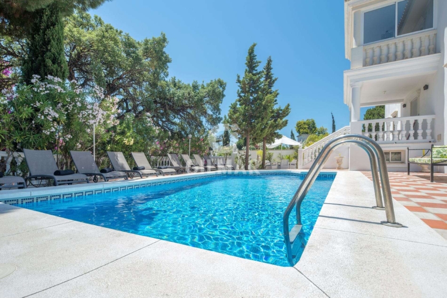 Magnificent Villa in Hacienda Las Chapas, an exclusive urbanization in Marbella East, 10 minutes from the city centre. This luxurious property has a construction of 492 m2 on a large plot of 1.378 m2. Distributed over 3 floors, it offers a total of 8 bedrooms and 6 bathrooms, plus a separate flat with living room, two bedrooms and two bathrooms.