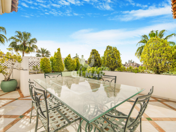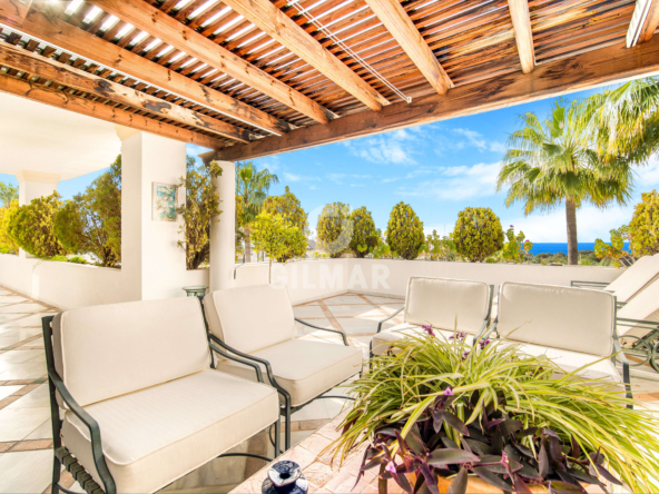 Exceptional south facing duplex penthouse in the exclusive community of Monte Paraiso on the Golden Mile with sea and pool views.