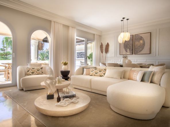 This exceptional 3-bedroom, 2.5-bathroom duplex penthouse is located in the prestigious gated community of Las Alamandas, at the heart of Nueva Andalucía’s Golf Valley. With panoramic views across lush fairways, this beautifully furnished home combines elegance, comfort, and style in one of Marbella’s most exclusive residential addresses.