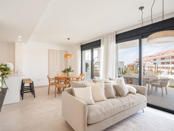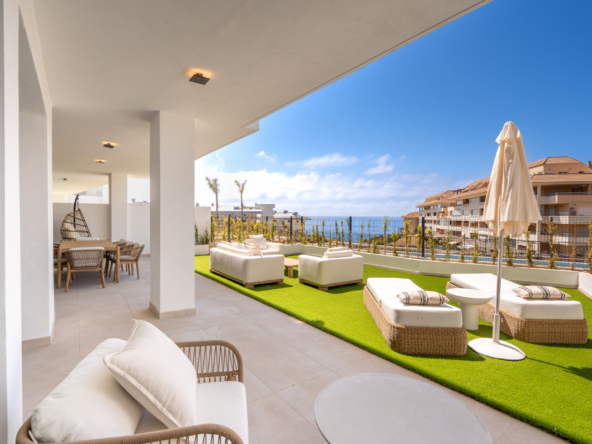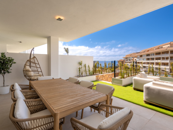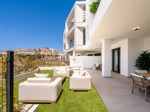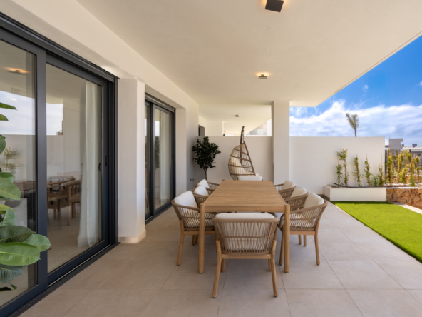 Discover this beautifully designed ground floor apartment offering 2 spacious bedrooms, generous outdoor space, and spectacular panoramic views of the Mediterranean.