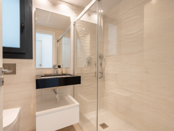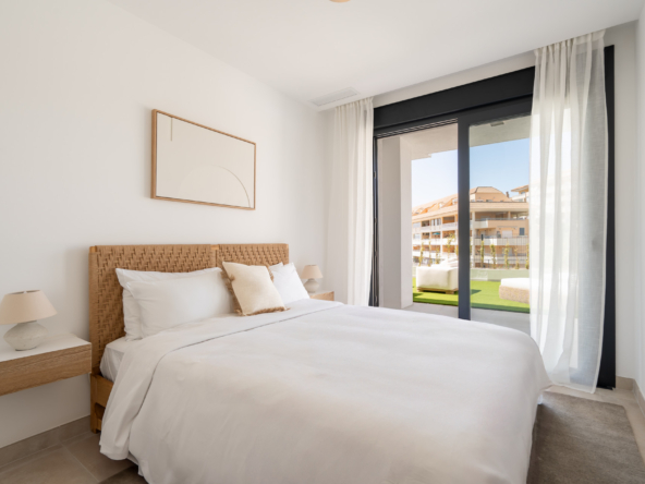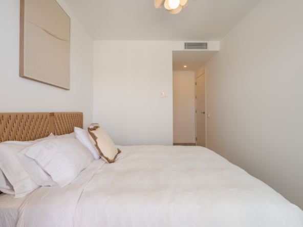 The master bedroom includes an en-suite bathroom and direct access to the terrace, while the second bedroom is perfect for guests, children, or a home office.