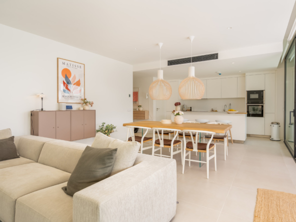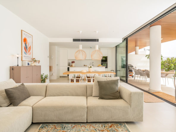 Step into luxury living with this beautifully furnished 3-bedroom, 2-bathroom ground floor apartment located in the prestigious Higuerón West community. Designed with a sleek Nordic aesthetic, this home offers clean lines, natural textures, and a calm, contemporary atmosphere throughout.