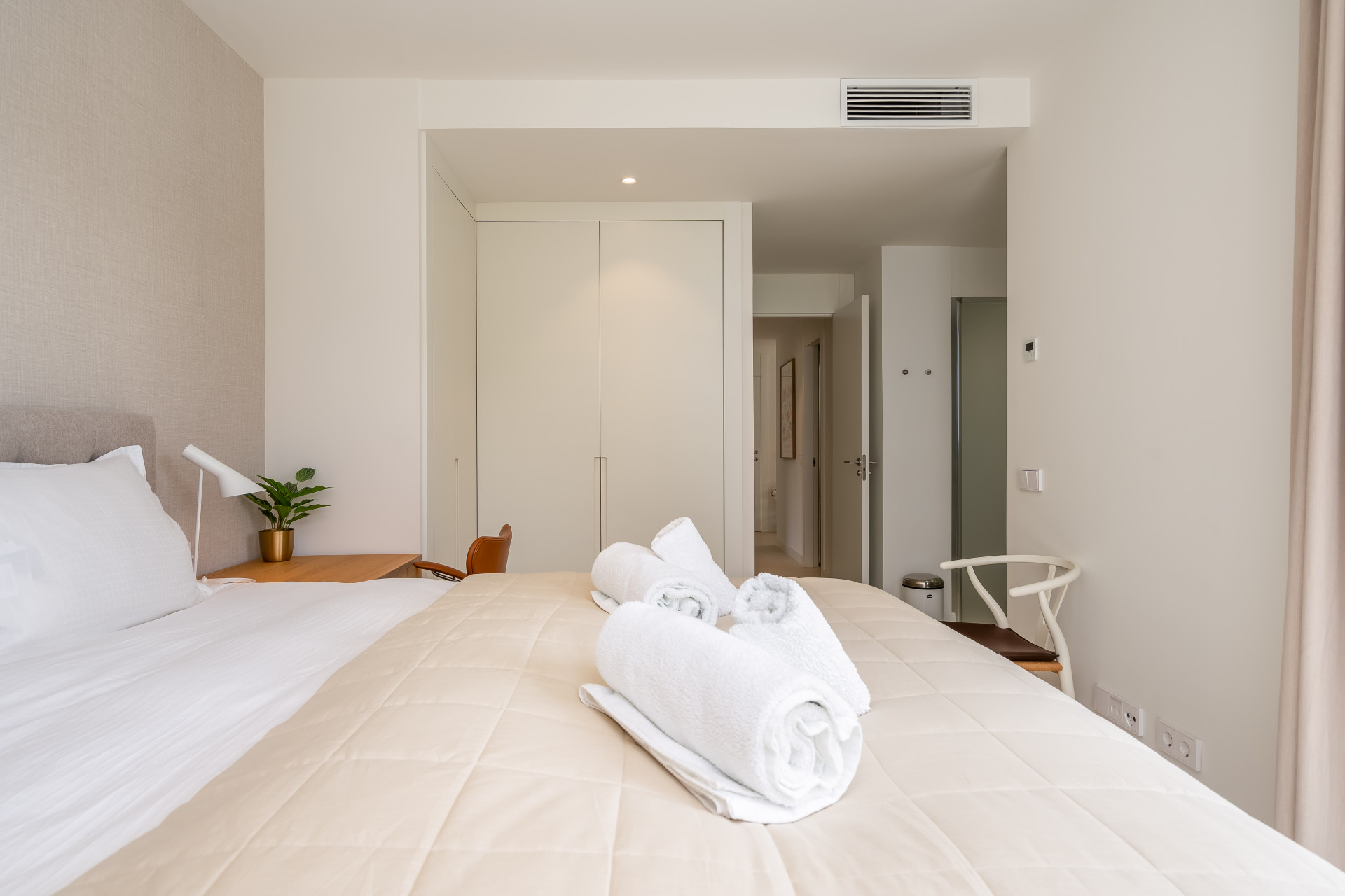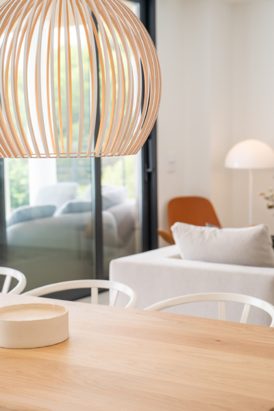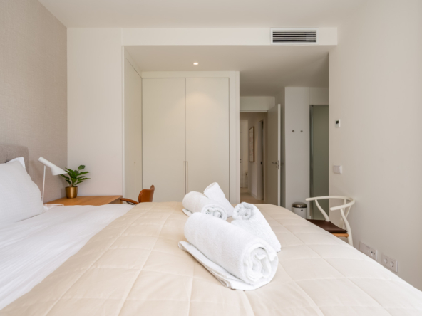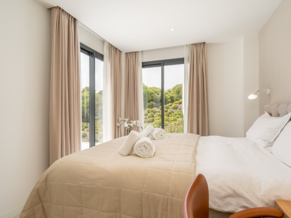 Inside, the open-plan layout flows effortlessly from the modern kitchen and dining area to the stylish living space, all flooded with natural light from floor-to-ceiling windows. Each bedroom is tastefully decorated and thoughtfully designed for comfort and privacy.