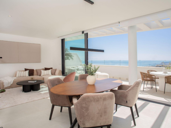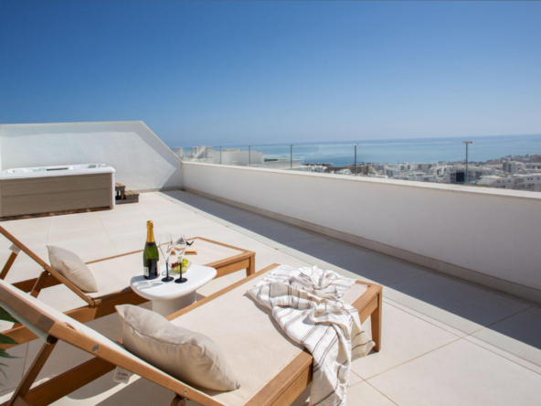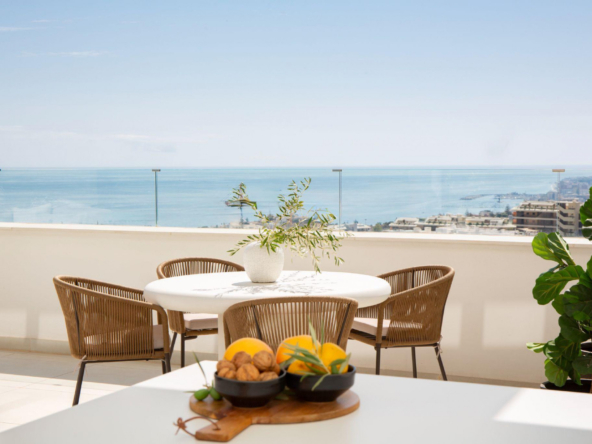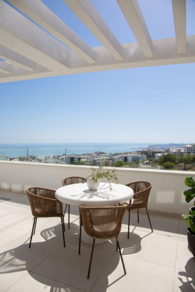Discover this exclusive penthouse, conceived within a residential project designed by the prestigious architects Broadway Malyan, renowned for their timeless elegance and clear commitment to sustainability. Set on a gentle green hillside with privileged views over the coast of Fuengirola, the complex offers an exceptional living experience in a tranquil, private environment harmoniously connected with nature.