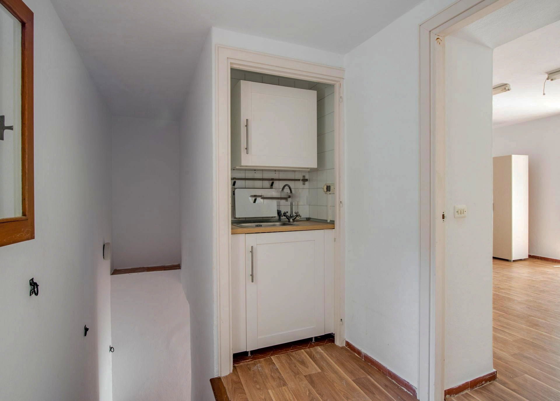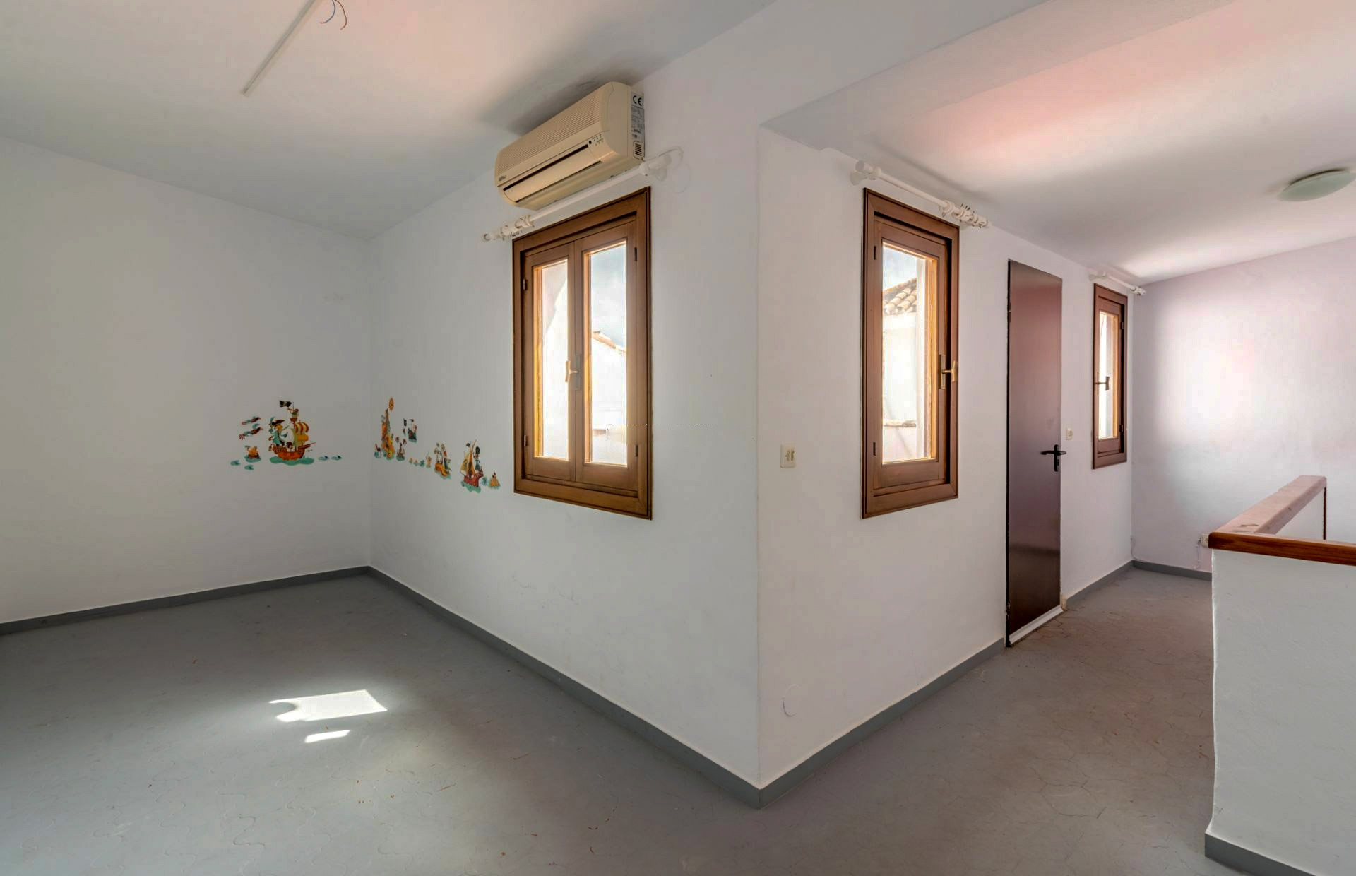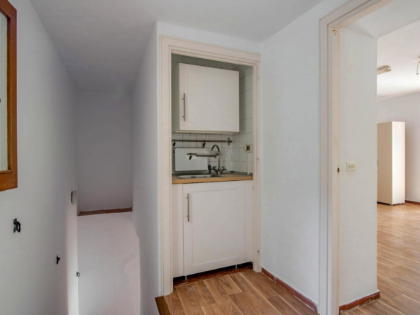 This is a four-story property with two wide staircases. The lower, open-plan room has air-conditioning installed and a white floor covering almost the entire room. The first-floor room is fitted out as an independent apartment, so it has a small sink area and a small bathroom with shower; the third floor is less worked but has new thermally insulated windows. The whole property has the potential for various renovations.