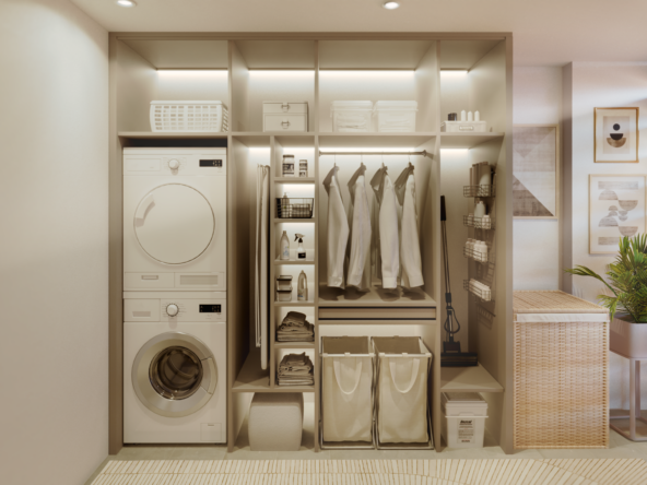 Every space has been thoughtfully designed for comfort and functionality. The upper floor houses three bedrooms, including a master suite with an en-suite bathroom and exceptional views. The lower floor features an open-plan living room connected to the kitchen, a guest toilet, a separate laundry area, and direct access to the garden, providing a perfect balance between privacy and communal living.