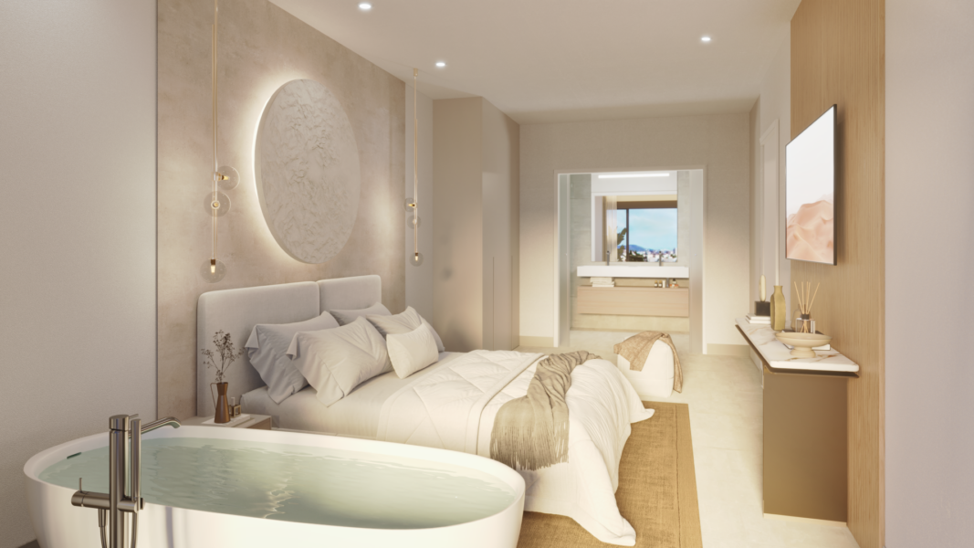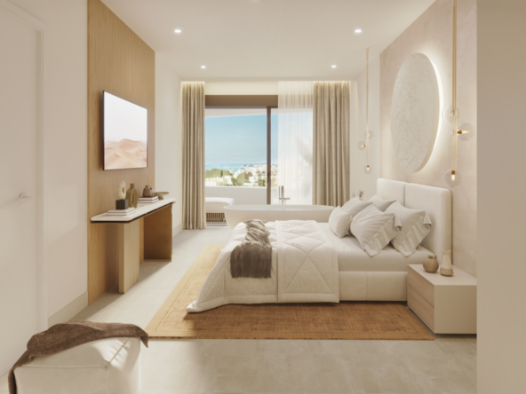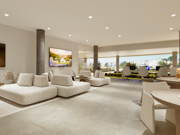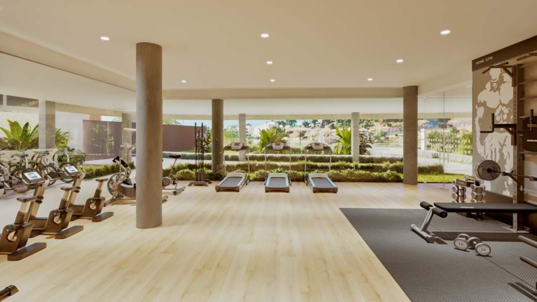 The modern and harmonious design of this sky villa seamlessly integrates with the surrounding nature, creating a haven of tranquillity and exclusivity. Built on a terraced four-level plot, it ensures unique panoramic views from every corner. Its spacious, private garden—elegant and serene—provides the perfect setting to enjoy the outdoors in a privileged and enchanting environment. The community offers a garage with two parking spaces per residence and an elevator to access the different levels of the complex.