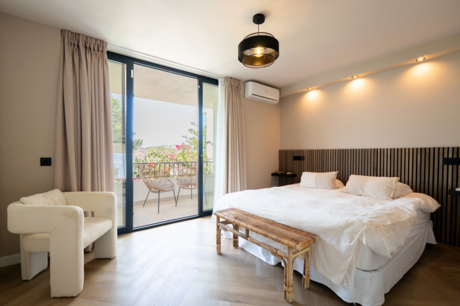 South-facing master bedroom with panoramic views over Mijas Golf